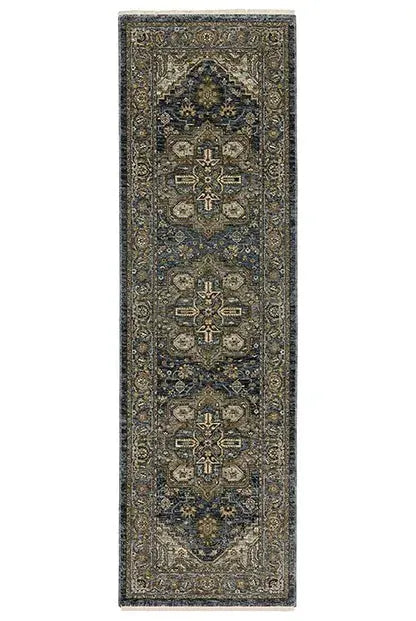 The Parisa PSA06 Denim/Multi Rug comes in various sizes, including 2x10, 5x7, 8x10, 8x11, 9x13, and 12x15 feet, accommodating different room dimensions.