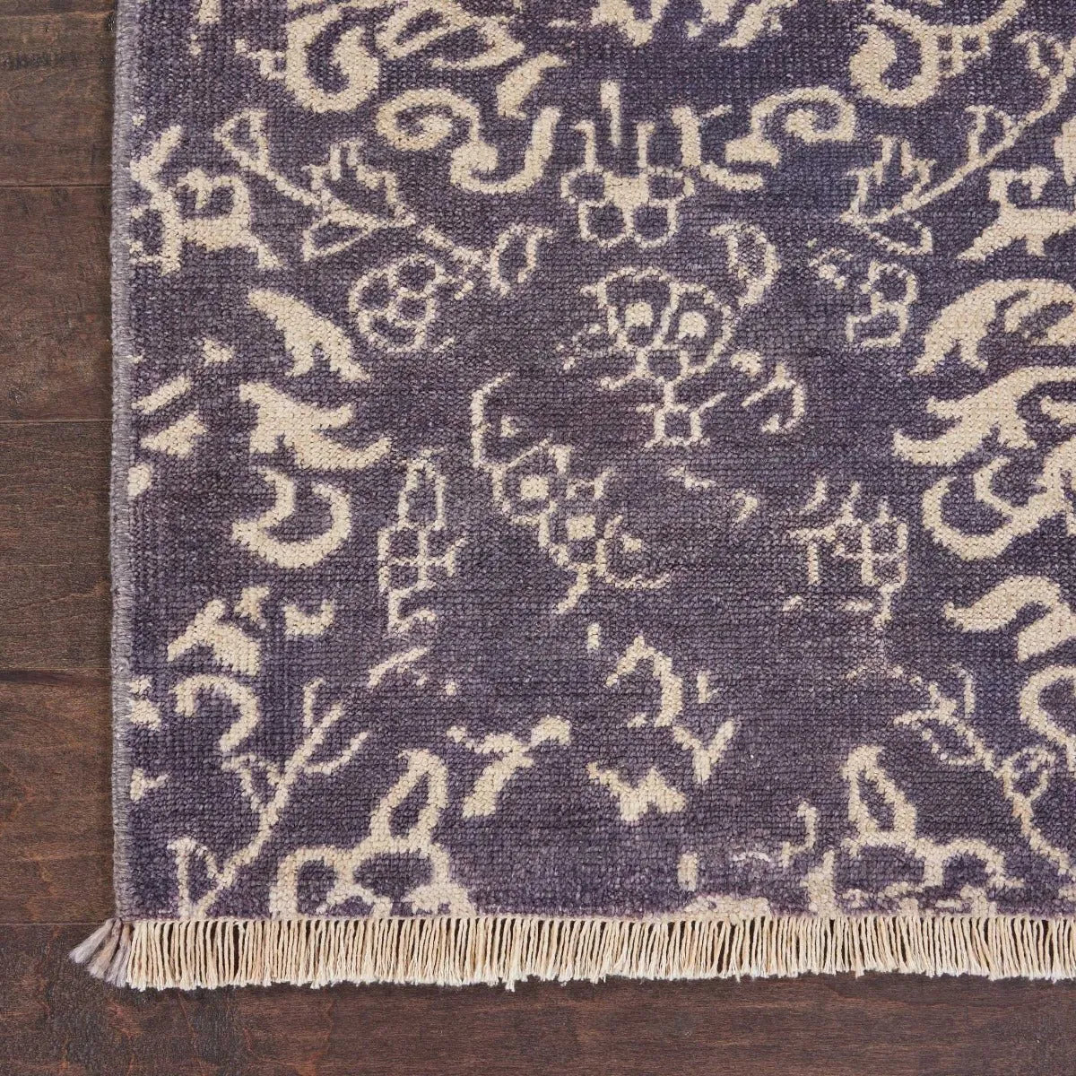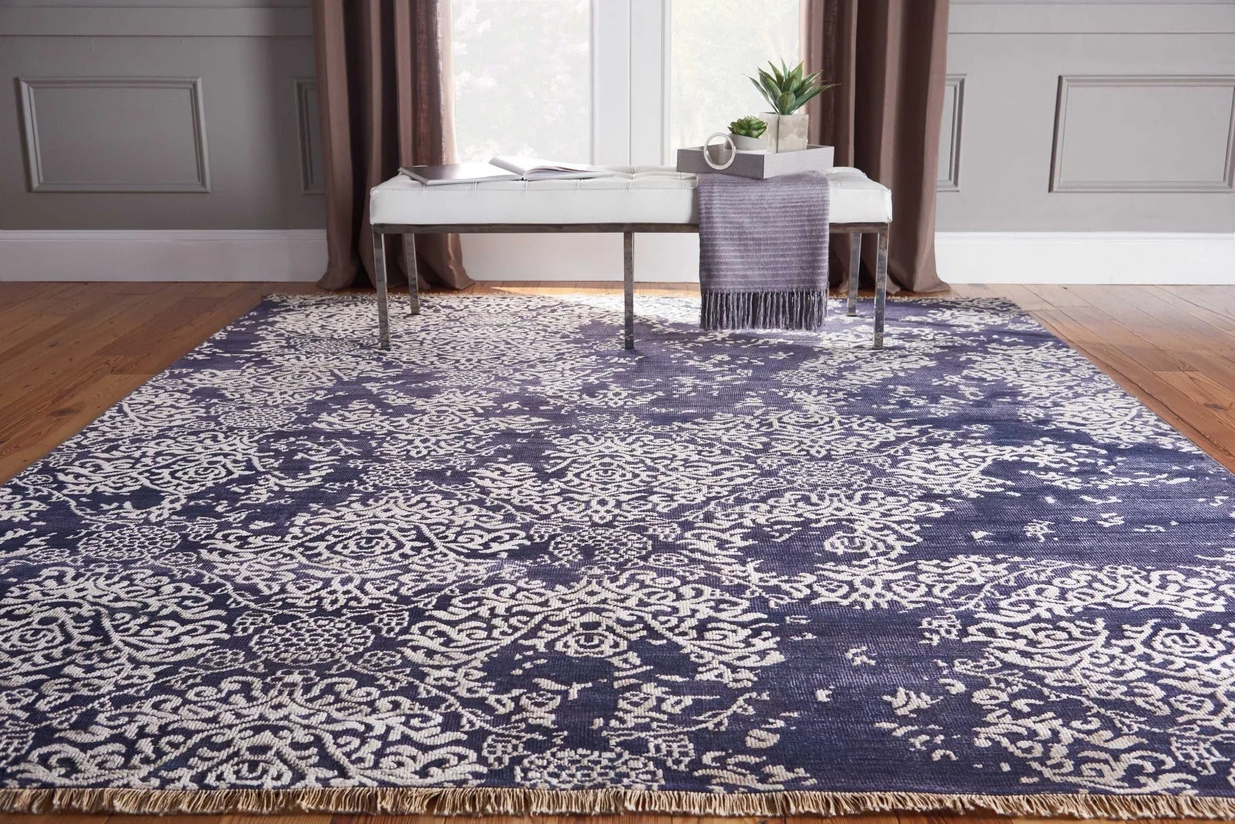 Evoking the history and intricacies of traditional Persian designs, this antique-inspired collection is hand knotted from luxurious bamboo extruded silk-like fibers for an extravagant texture and tone that exudes a spectacular sumptuousness. Featuring an array of elegant color palettes in blended rich tones. An oversized Damask design with glamorous gold fringes gets the royal treatment in regal shades of sapphire blue and ivory. Hand knotted from a splendid bamboo extruded silk-like pile, this glorious Aldora area rug from Nourison will elevate the elegance of any room.