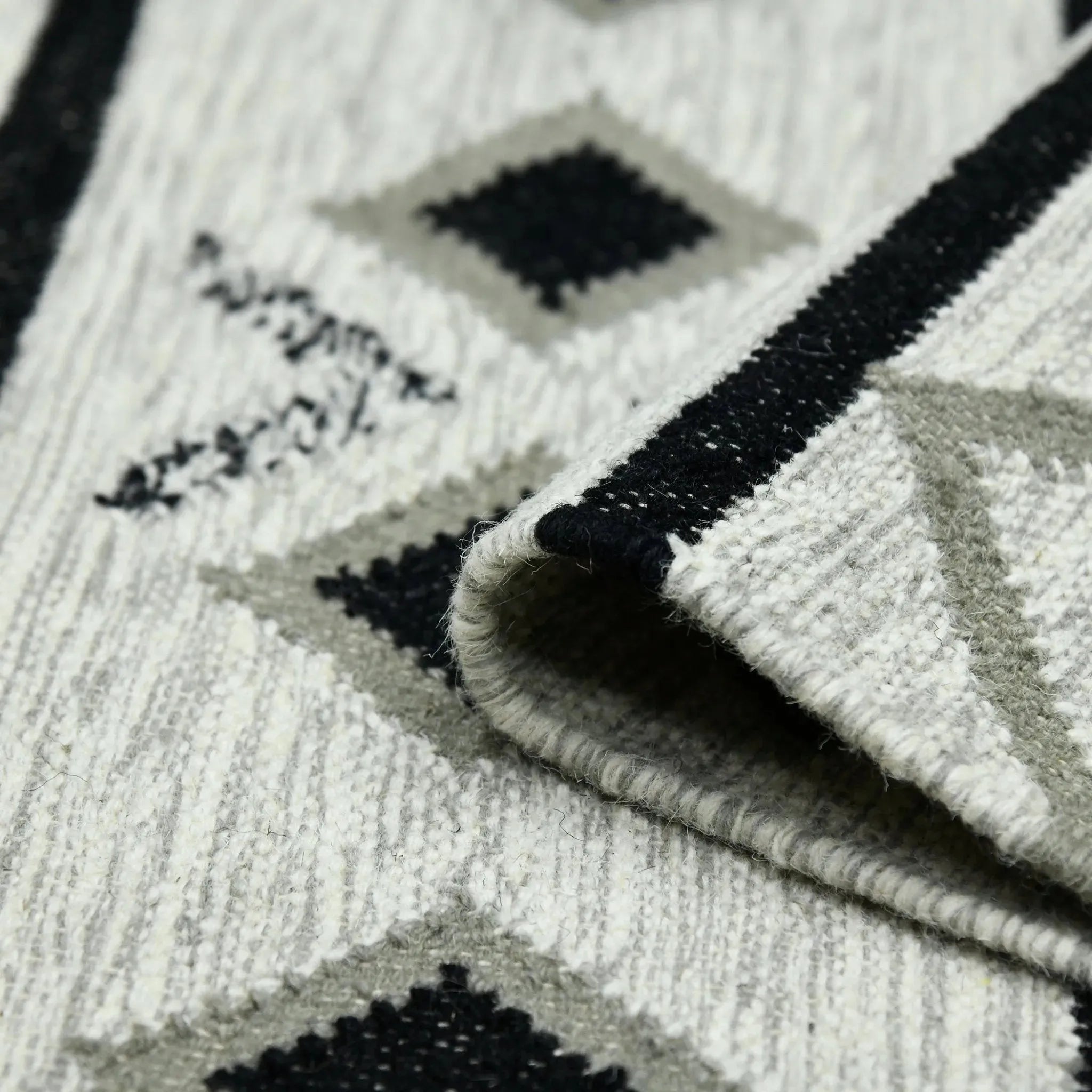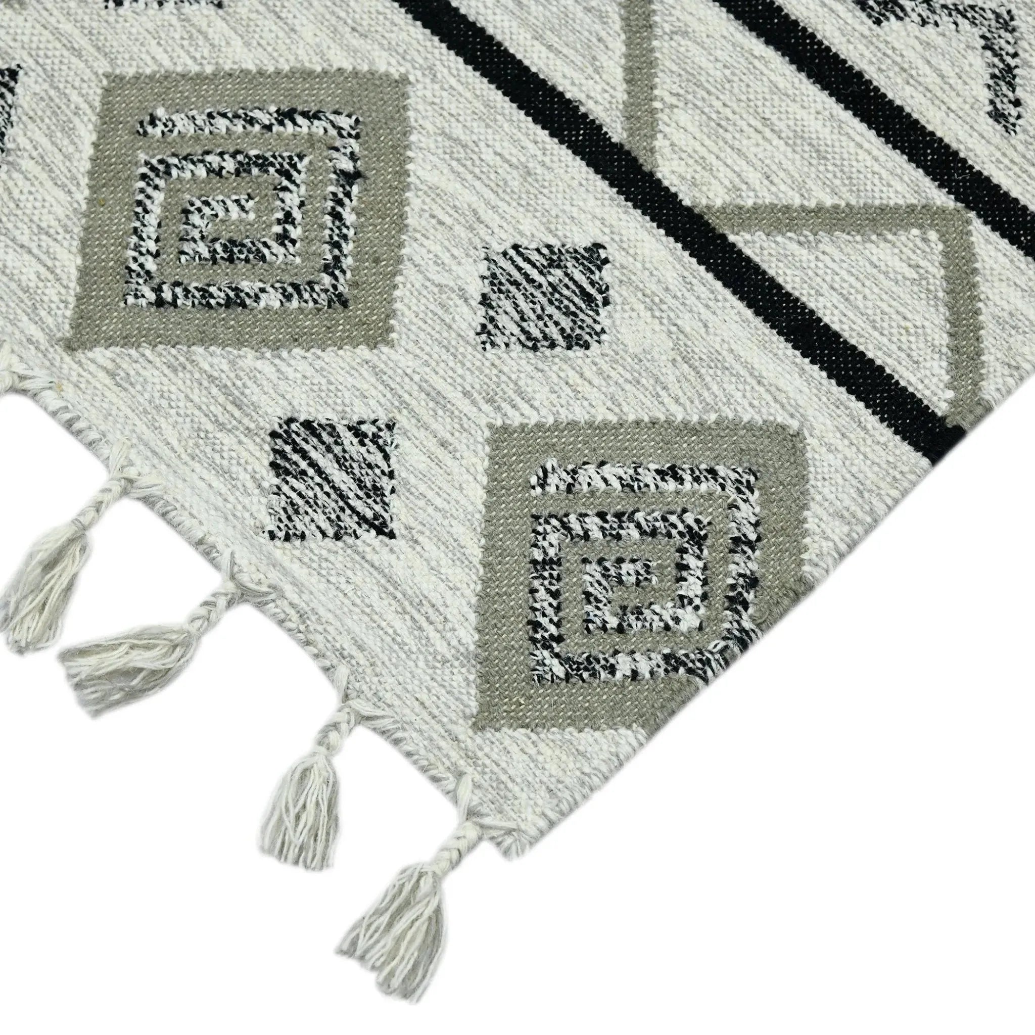 Bring the timeless tribal beauty into your home with this alluring flatweave area rug. Showcasing a combination of eclectic and southwestern designs in neutral colors, this will fit into a variety of home decor styles. Beautifully hand-woven by skilled artisans in India using 100% all-natural wool, this rug will endure the test of time.