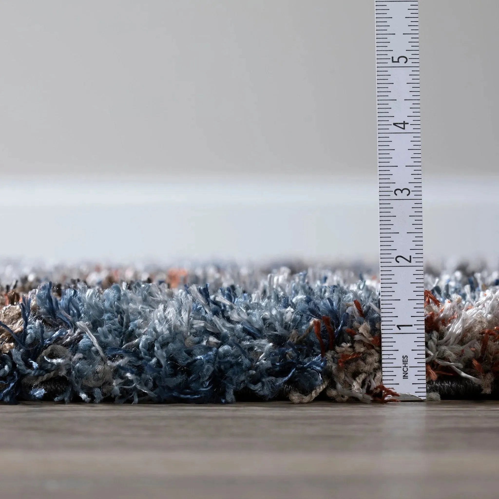 The Parisa PSA06 Denim/Multi Rug comes in various sizes, including 2x10, 5x7, 8x10, 8x11, 9x13, and 12x15 feet, accommodating different room dimensions.