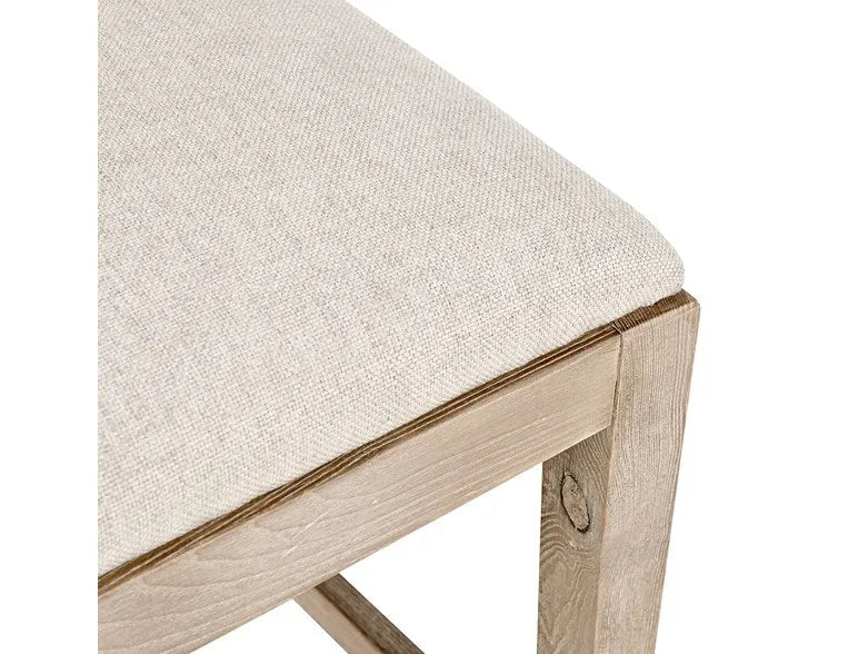 Showcasing its smooth grain finish, the Beck counter stool finds balance in its upholstery and sand-hued ash wood. A subtle metal plate detail enhances its durability and aesthetic appeal, offering a perfect mix of style and functionality.
