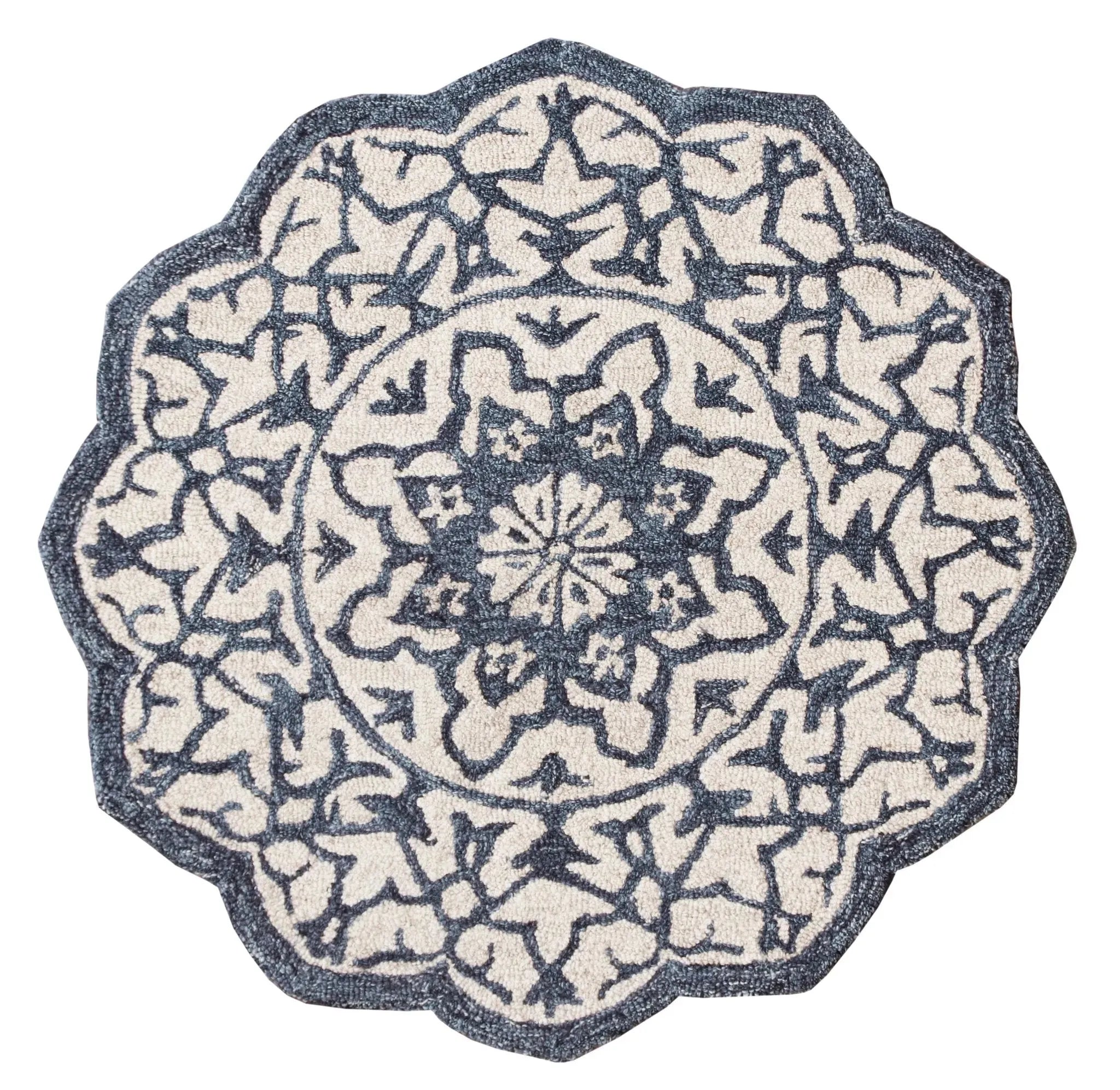 Bring home this eye-catching medallion rug for a perfect addition to the home looking to add some intricate designs without overwhelming a small space. The color combination on this rug is easy to combine with a variety of different palettes. There are endless possibilities of where this piece can be placed in your home or even in an office. Handmade in India, this piece has been made with intricate craftsmanship from hardworking hands to your home.