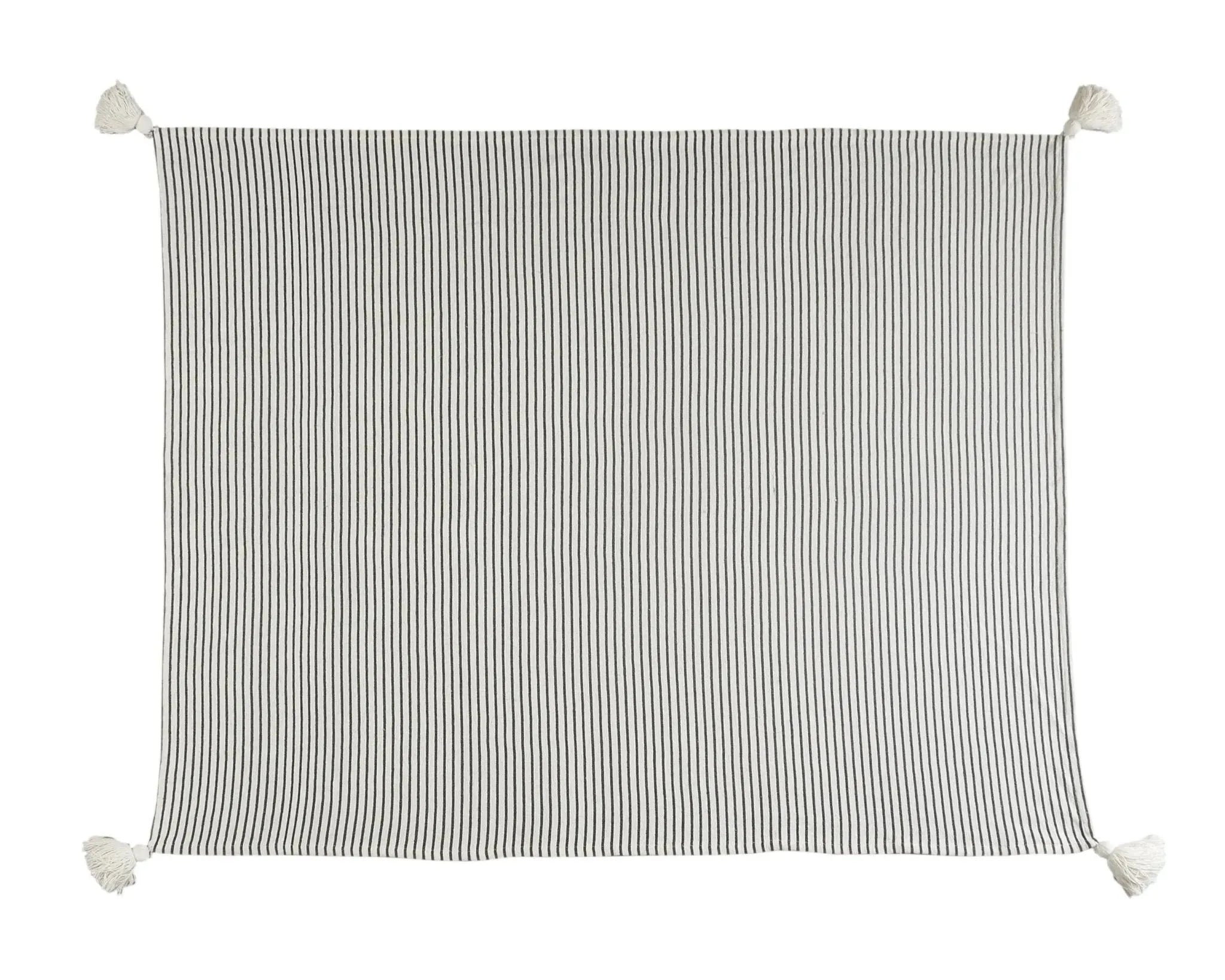 Come get cozy with your new favorite throw blanket! With your new addition, it is quite tempting to stay at home all day. Even if you can't, you can still enjoy the view of your new throw blanket placed over a chair, folded onto the couch, or spread onto the bed. If a comfy and homey look is what you are going for then this is the throw for you! The well-toned black and ivory coloring go well with a variety of different home decor themes. The tasseled and striped features also give this blanket an eye-catching appearance. No matter the season, there is always time to relax and snuggle up with this new addition to your home.