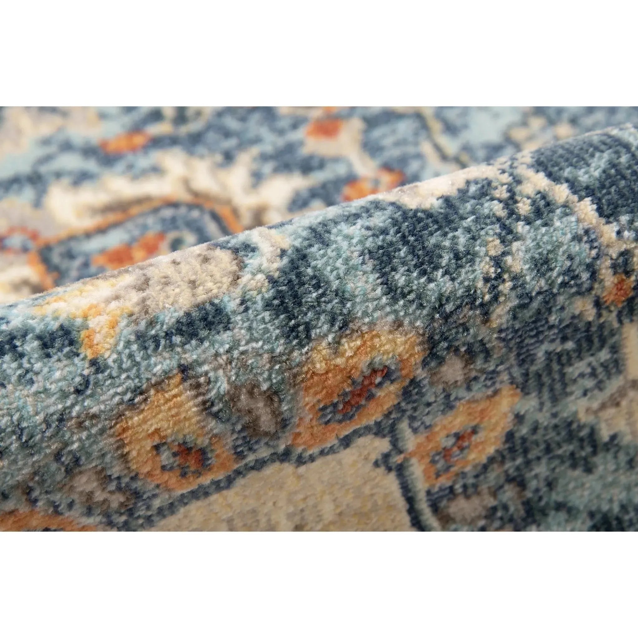 The Parisa PSA06 Denim/Multi Rug comes in various sizes, including 2x10, 5x7, 8x10, 8x11, 9x13, and 12x15 feet, accommodating different room dimensions.