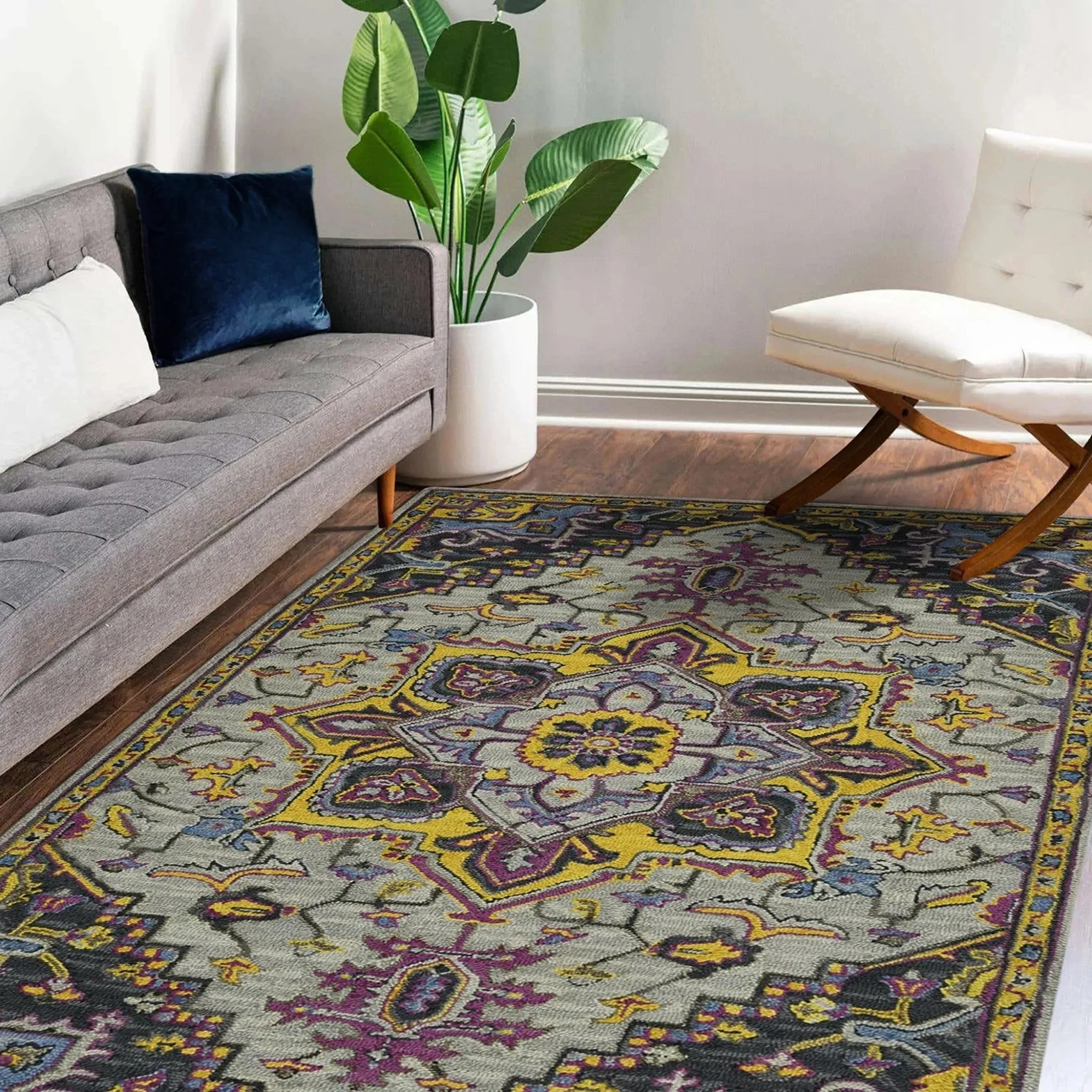 You will adore this bright, bohemian area rug featuring bold colors in a thick, plush design. Hand-tufted with pride in India of 100% New Zealand wool, it is as sturdy as it is soft. Featuring a cotton backing to prevent some sliding and shifting, this rug is the perfect addition to your bohemian or transitional home.