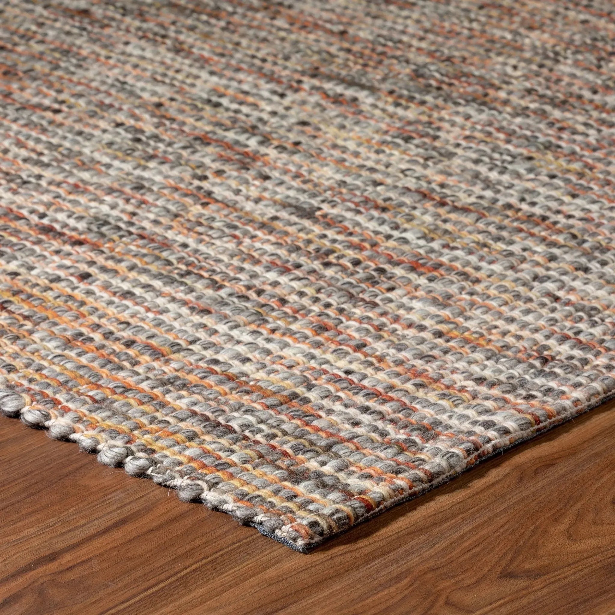 Bondi is a chunky "cobblestone" wool rug with undyed, tonal wool foundation with vertical, space dyed, accent yarns.