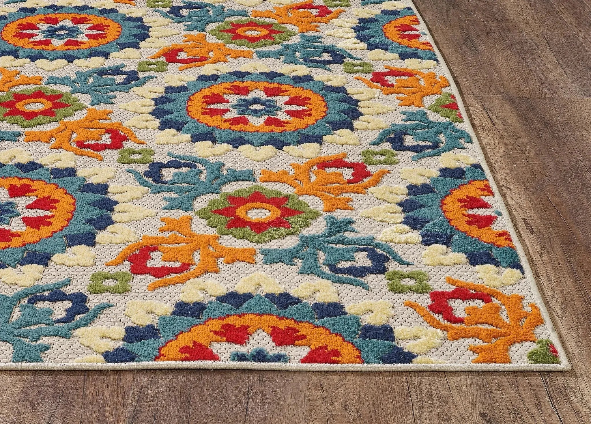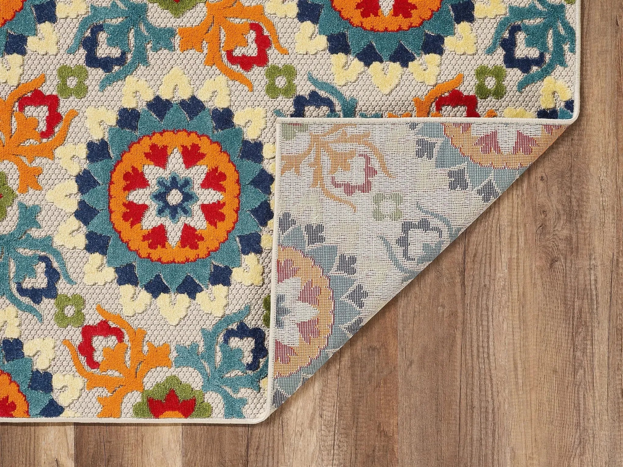 Refresh your outdoor living space with one of our Calla rugs! This collection is made of beautifully bold rugs in a variety of patterns and colors. These easy care and all-weather purpose rugs are machine woven in India of 100% UV treated polypropylene. Calla has a low ¼” pile height with texture.