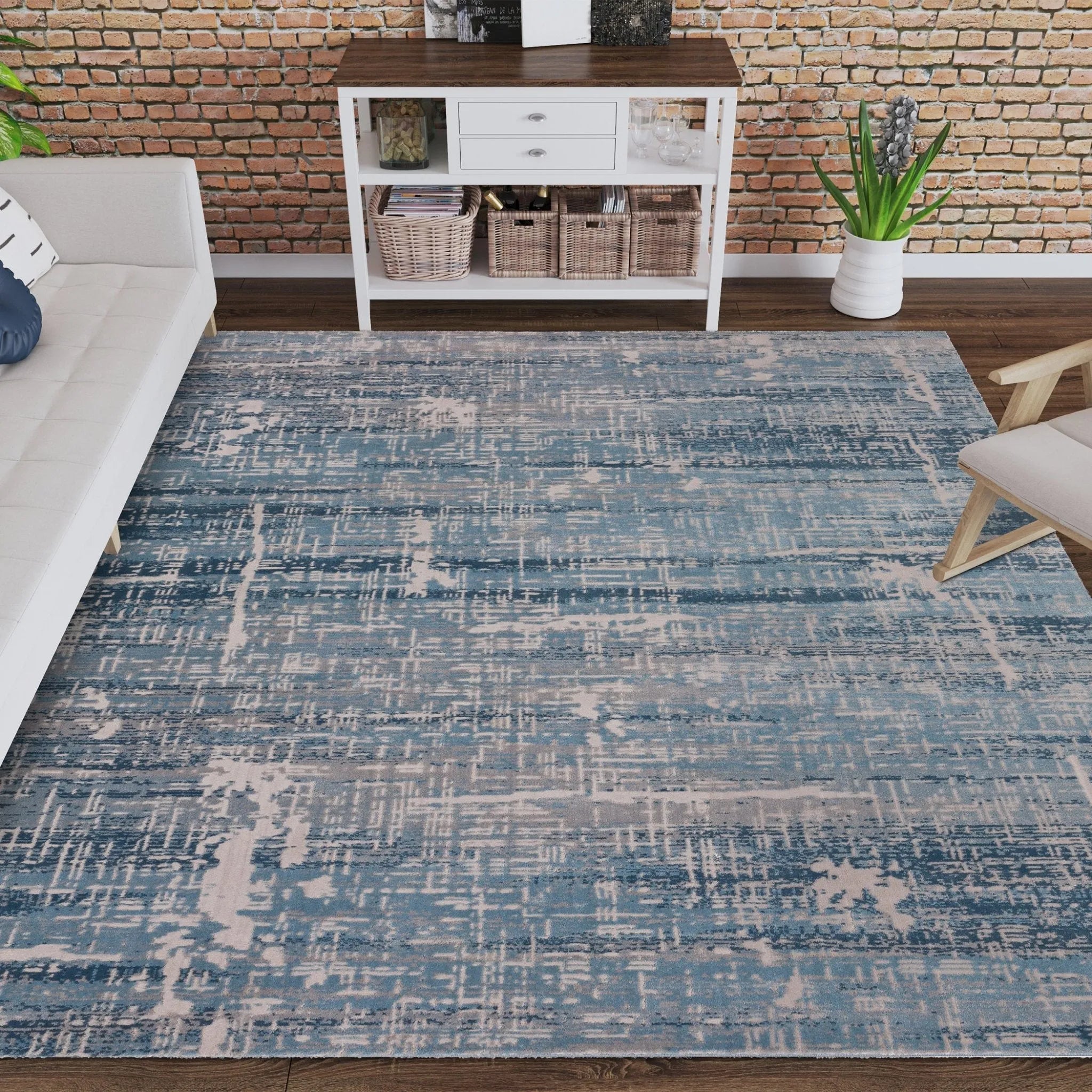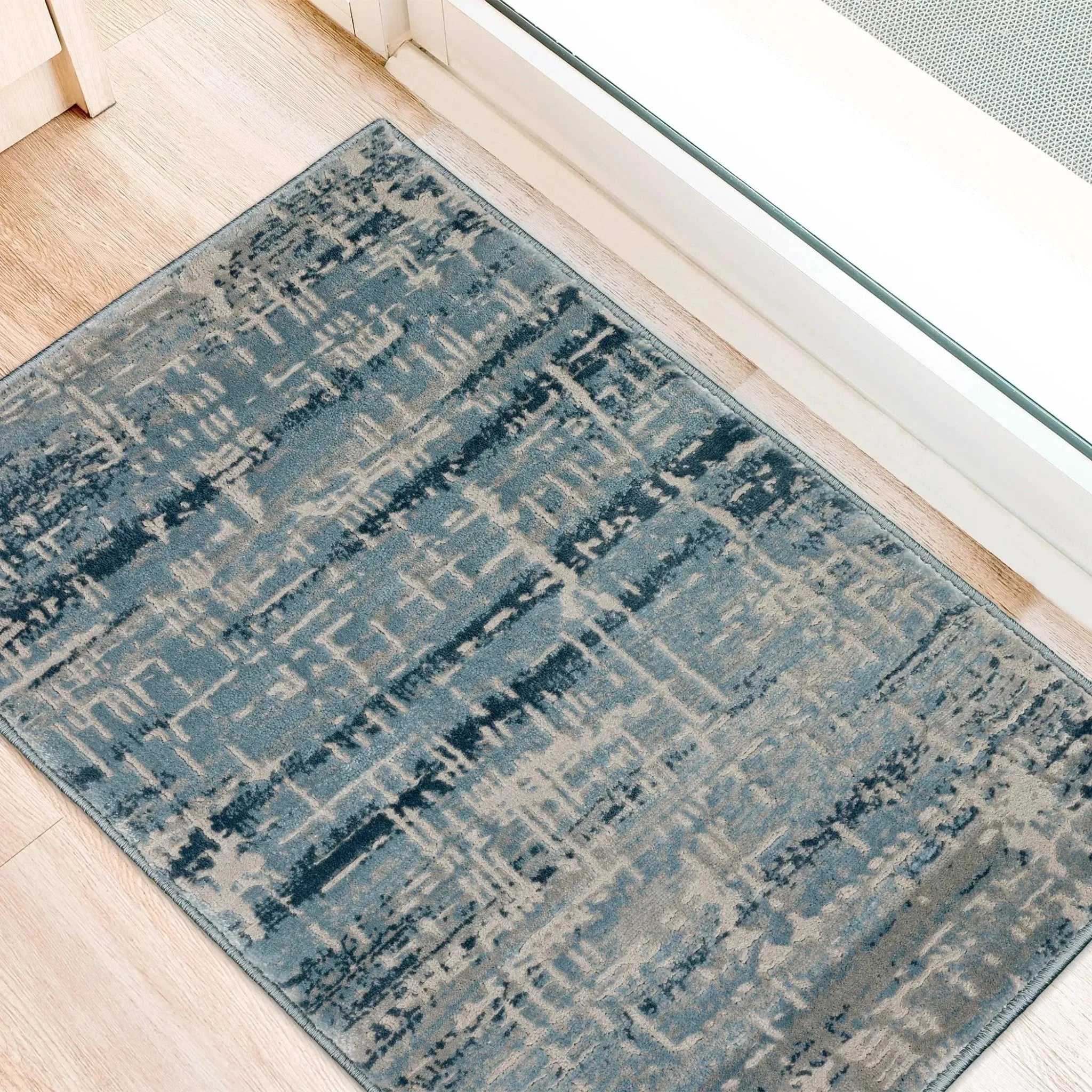 The Parisa PSA06 Denim/Multi Rug comes in various sizes, including 2x10, 5x7, 8x10, 8x11, 9x13, and 12x15 feet, accommodating different room dimensions.