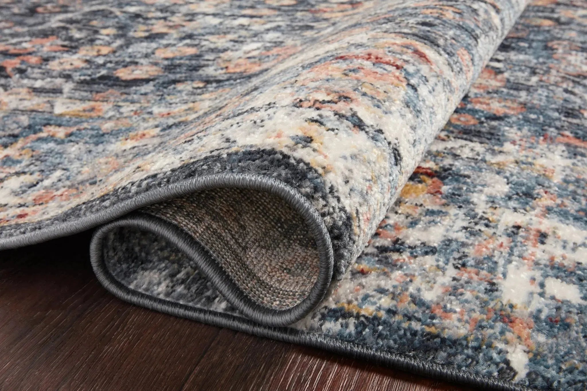 The Parisa PSA06 Denim/Multi Rug comes in various sizes, including 2x10, 5x7, 8x10, 8x11, 9x13, and 12x15 feet, accommodating different room dimensions.