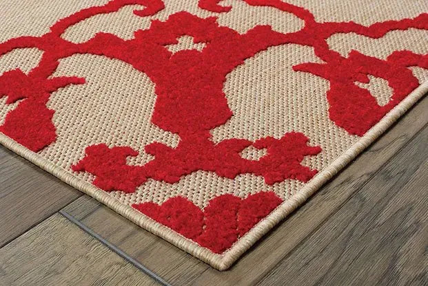 The indoor/outdoor Cayman collection features crisp geometric and globally-inspired patterns in vibrant shades that pop against a sand-colored background. Machine woven of 100% polypropylene in a flatweave construction with a high/low textured pile that works well both inside the home and outdoors. This rug is perfect for your living room, dining room, den, bedroom, or any living space.
