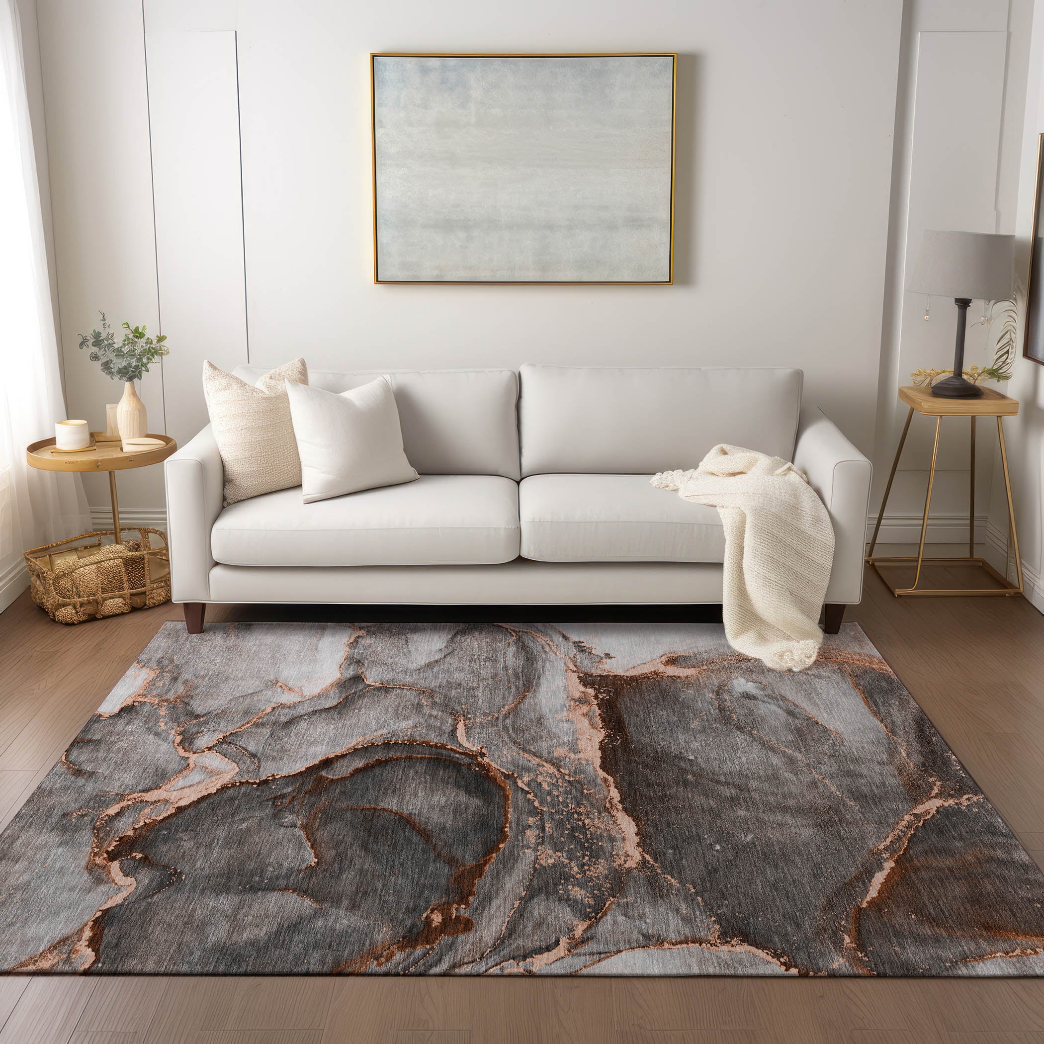 Experience the beauty of our area rug, where a free-flowing pattern creates soft transitions reminiscent of clouds. This contemporary watercolor rug is a stunning addition to any space. UV-stabilized for indoor or outdoor use, it offers versatility in placement. The ultra-thin construction includes an incorporated non-skid backing, eliminating the need for a separate rug pad. Plus, it's machine-washable and designed to be family and pet-friendly.