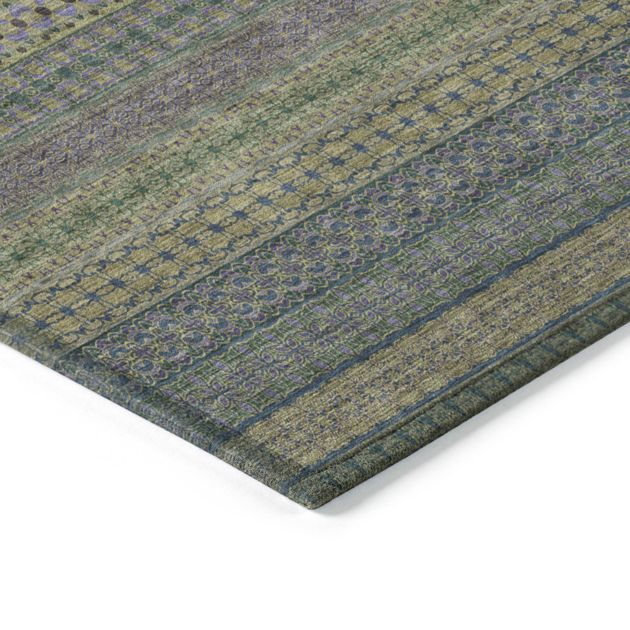 Step into a world of whimsy with our area rug, featuring an eclectic mix of shapes and motifs that add a touch of playfulness to your floor. This transitional striped rug is a true statement piece. With UV stabilization, it can be confidently placed indoors or outdoors. The ultra-thin construction includes an incorporated non-skid backing, ensuring stability and removing the need for a separate rug pad. It's machine-washable and designed to withstand the demands of a family-friendly home.