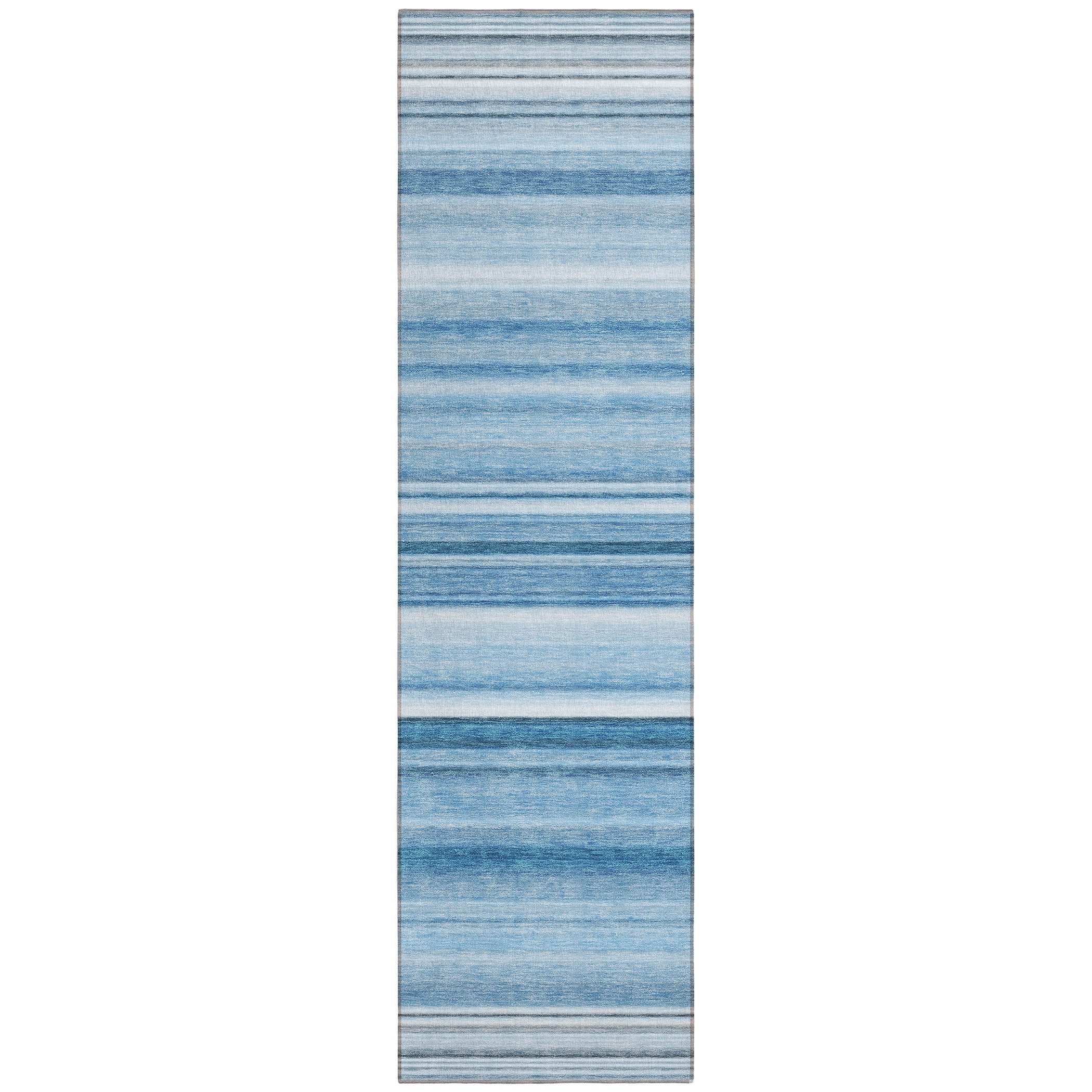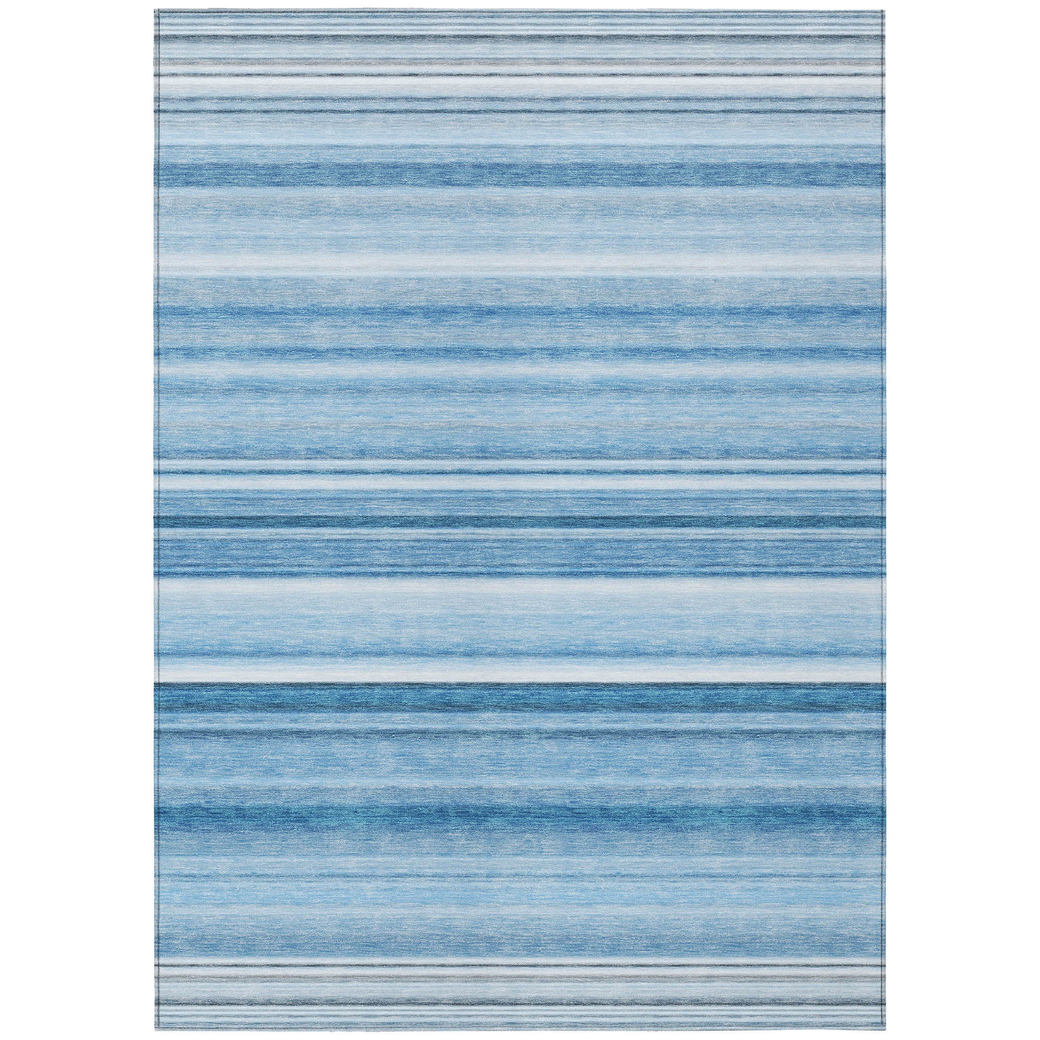 Make a timeless statement in your space with our area rug, featuring horizontal lines in soft tonal hues that create a classic and sophisticated element. This transitional striped rug adds a touch of elegance to any room. With UV stabilization, it can be confidently used indoors or outdoors, allowing for versatile placement. The ultra-thin construction includes an incorporated non-skid backing, ensuring stability and eliminating the need for a separate rug pad. It's machine-washable and designed to be family and pet-friendly, making it a practical choice for busy households.
