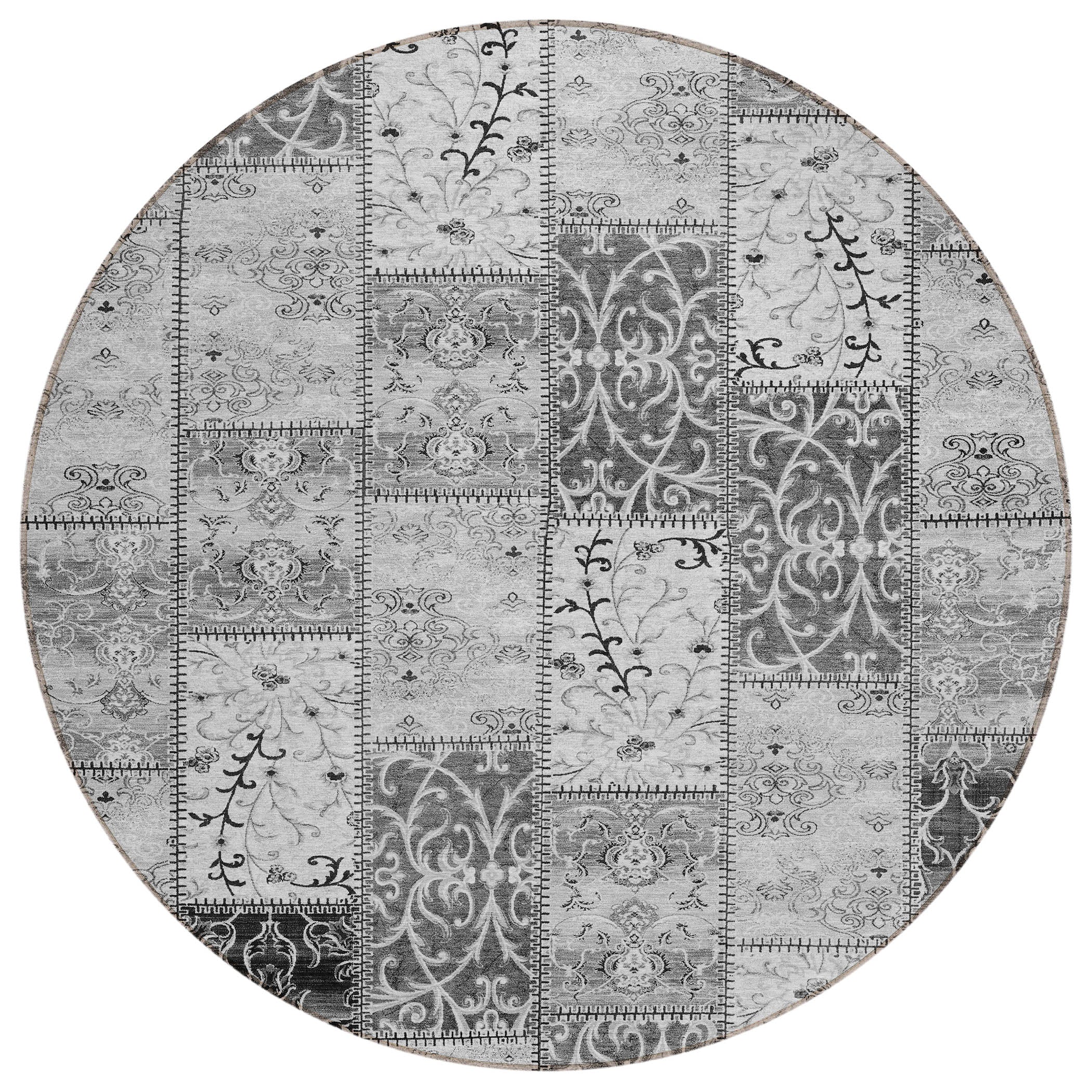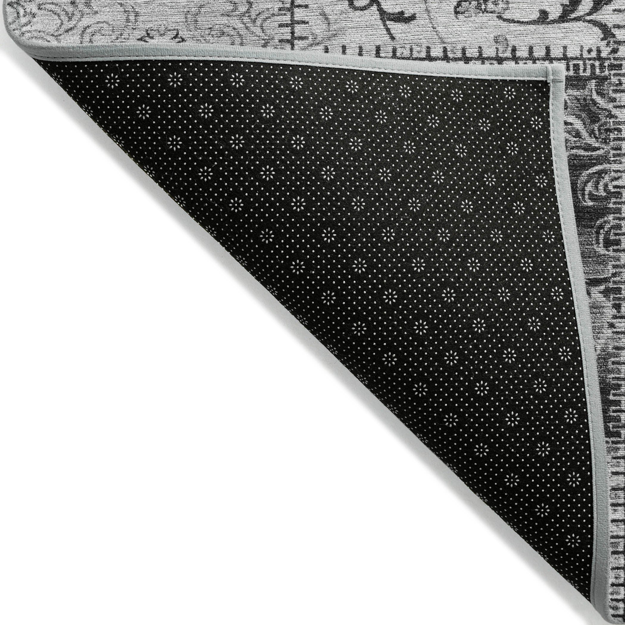 Immerse yourself in the elegance of our transitional panel rug, featuring vertical panels of whimsical, wrought iron-like motifs that are segmented by stitched-like seams. This creative display of artistry gives it a uniquely refined look. Designed to withstand both indoor and outdoor use due to its UV stabilization, it also flaunts an ultra-thin construction with a built-in non-skid backing, eliminating the need for a separate rug pad. Machine-washable for easy care, making it family and pet-friendly.