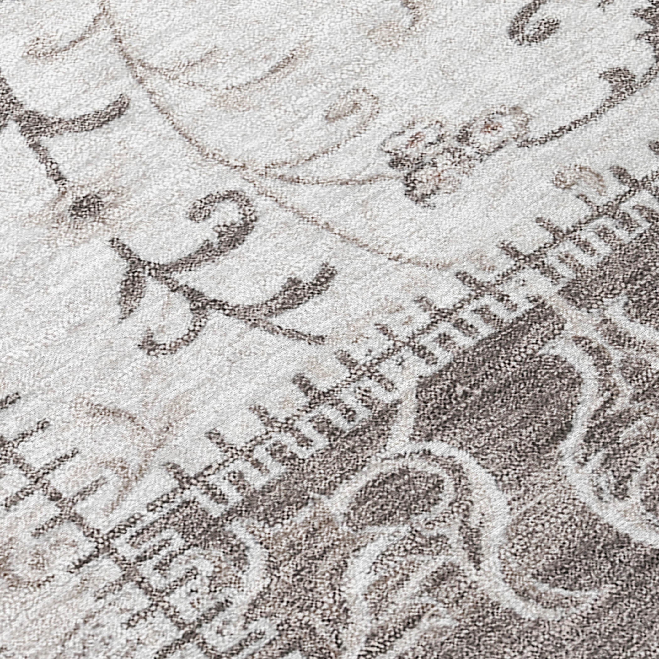 Immerse yourself in the elegance of our transitional panel rug, featuring vertical panels of whimsical, wrought iron-like motifs that are segmented by stitched-like seams. This creative display of artistry gives it a uniquely refined look. Designed to withstand both indoor and outdoor use due to its UV stabilization, it also flaunts an ultra-thin construction with a built-in non-skid backing, eliminating the need for a separate rug pad. Machine-washable for easy care, making it family and pet-friendly.