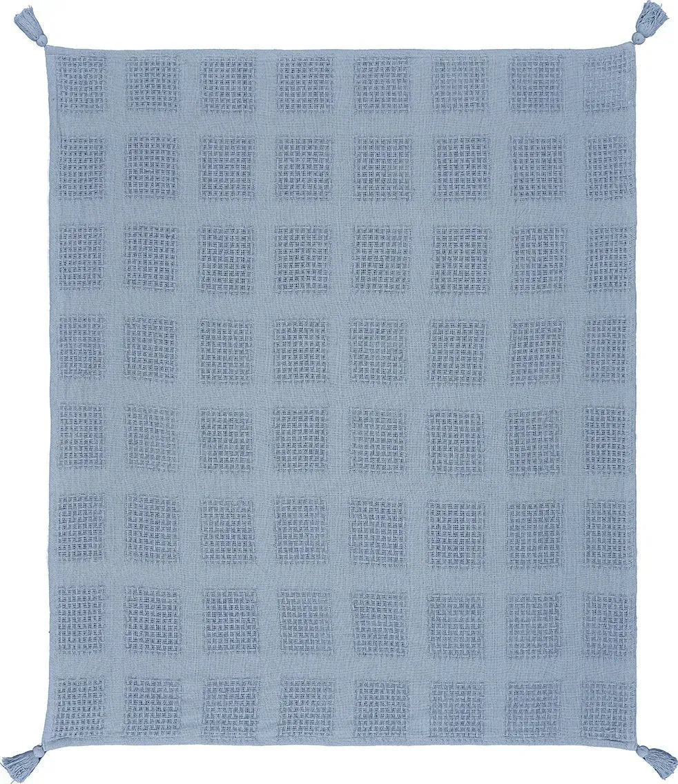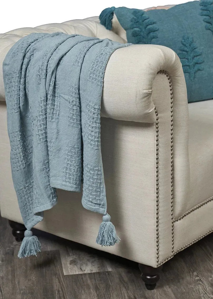 Come get cozy with your new favorite throw blanket. Tempting to stay at home all day yet even if you can't, you can at least enjoy the view of your new throw blanket placed over a chair, folded onto the couch, or spread onto the bed. If a comforting and cozy look is what you are going for then this is the throw for you. The well-toned soft blue coloring goes well with a variety of different design palettes. The woven feature also gives this blanket an eye-catching texture. No matter the season there is always time to relax and get comfortable with your new addition to the home.