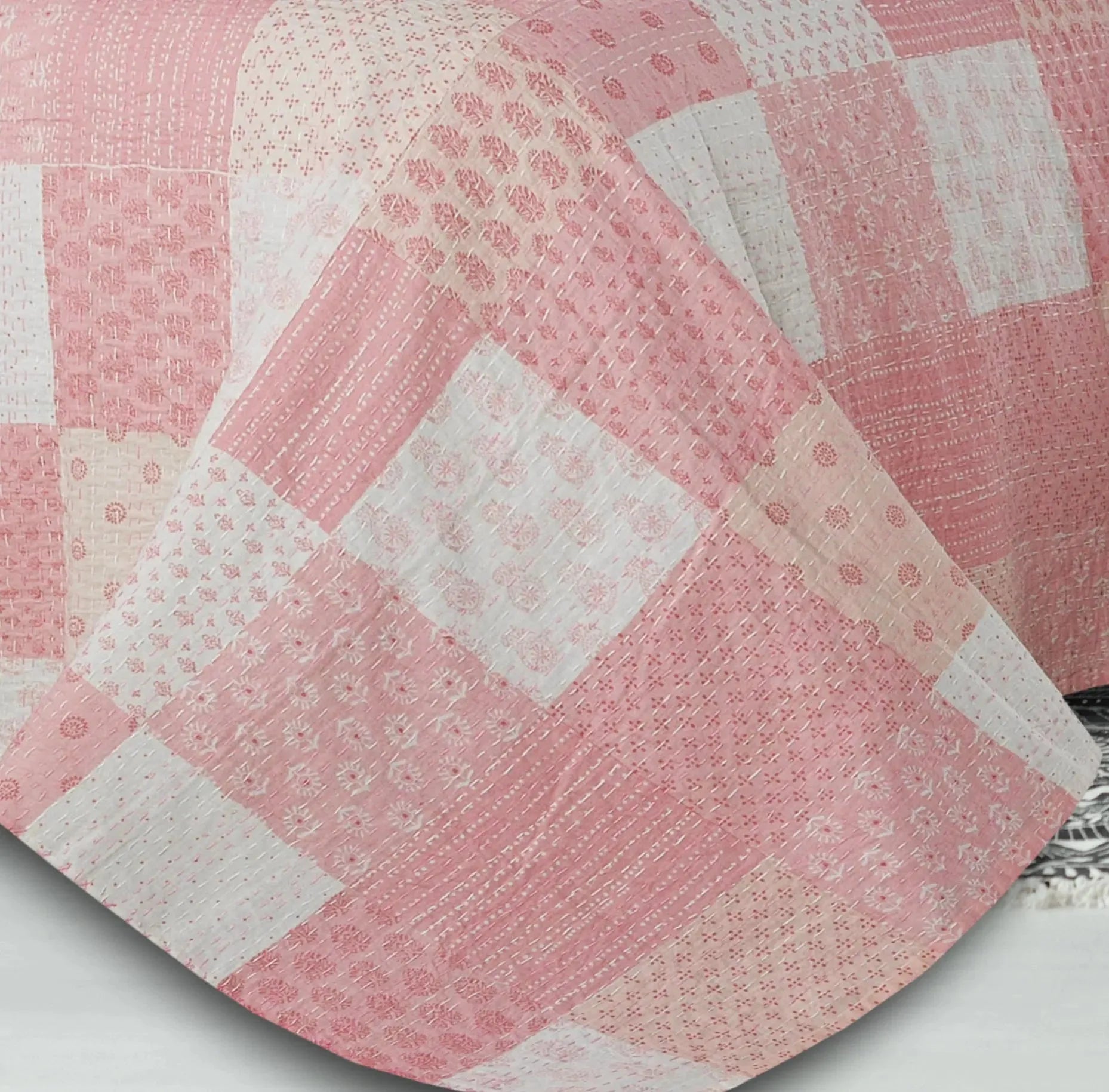 Our Kantha collection is an artisanal study of the bold and rich cultures and traditions of India. These products are handcrafted using a technique passed down through generations wherein the bright and vibrant swatches of saris are carefully stitched together to create intimate works of art that can become family heirlooms. We hope that you enjoy this sincere exchange of culture and tradition, and that your home is enriched by its presence. Each piece is truly one of a kind, the image provided is only a guarantee of color family and general appearance.