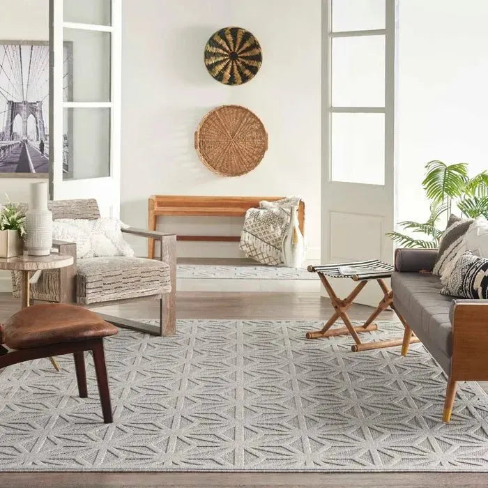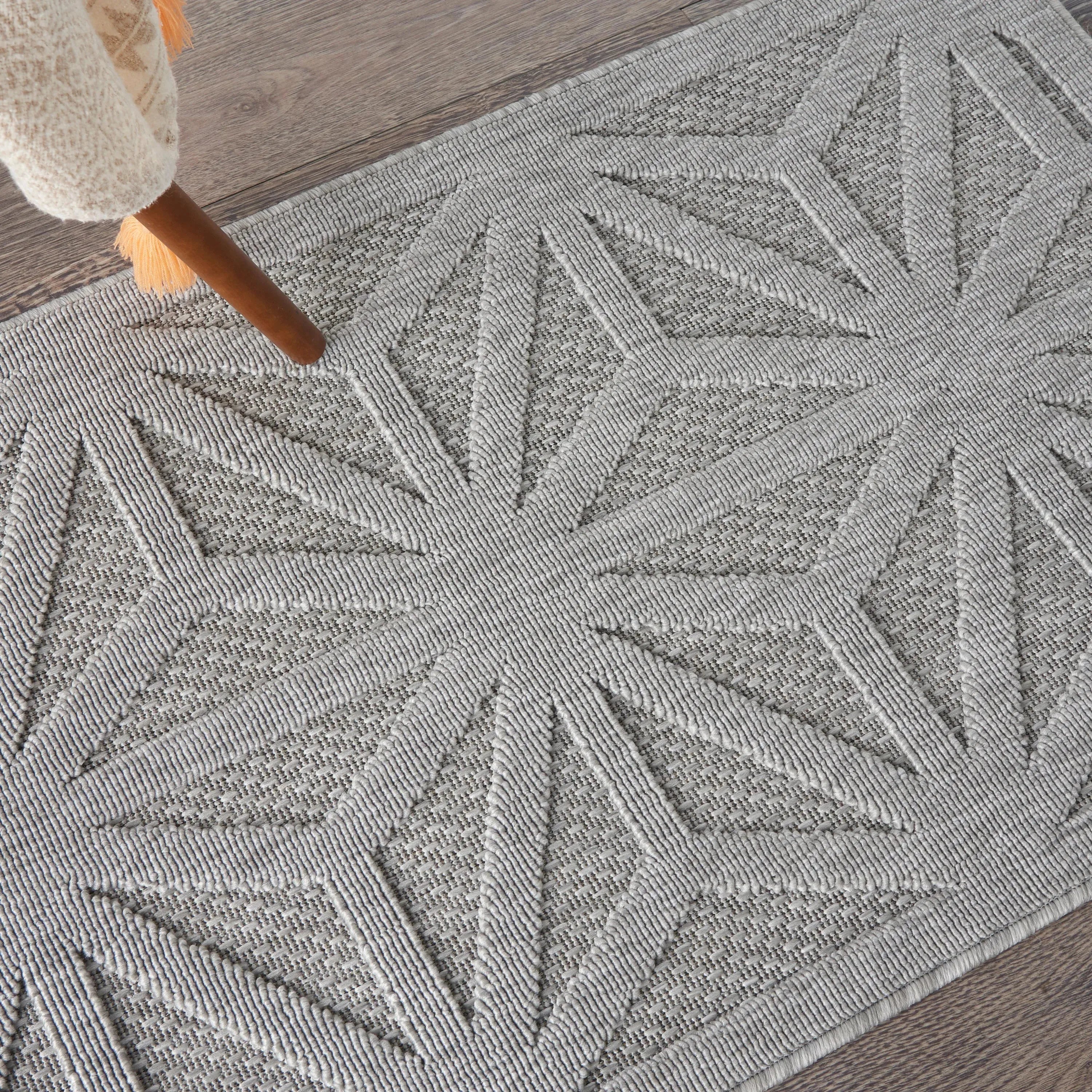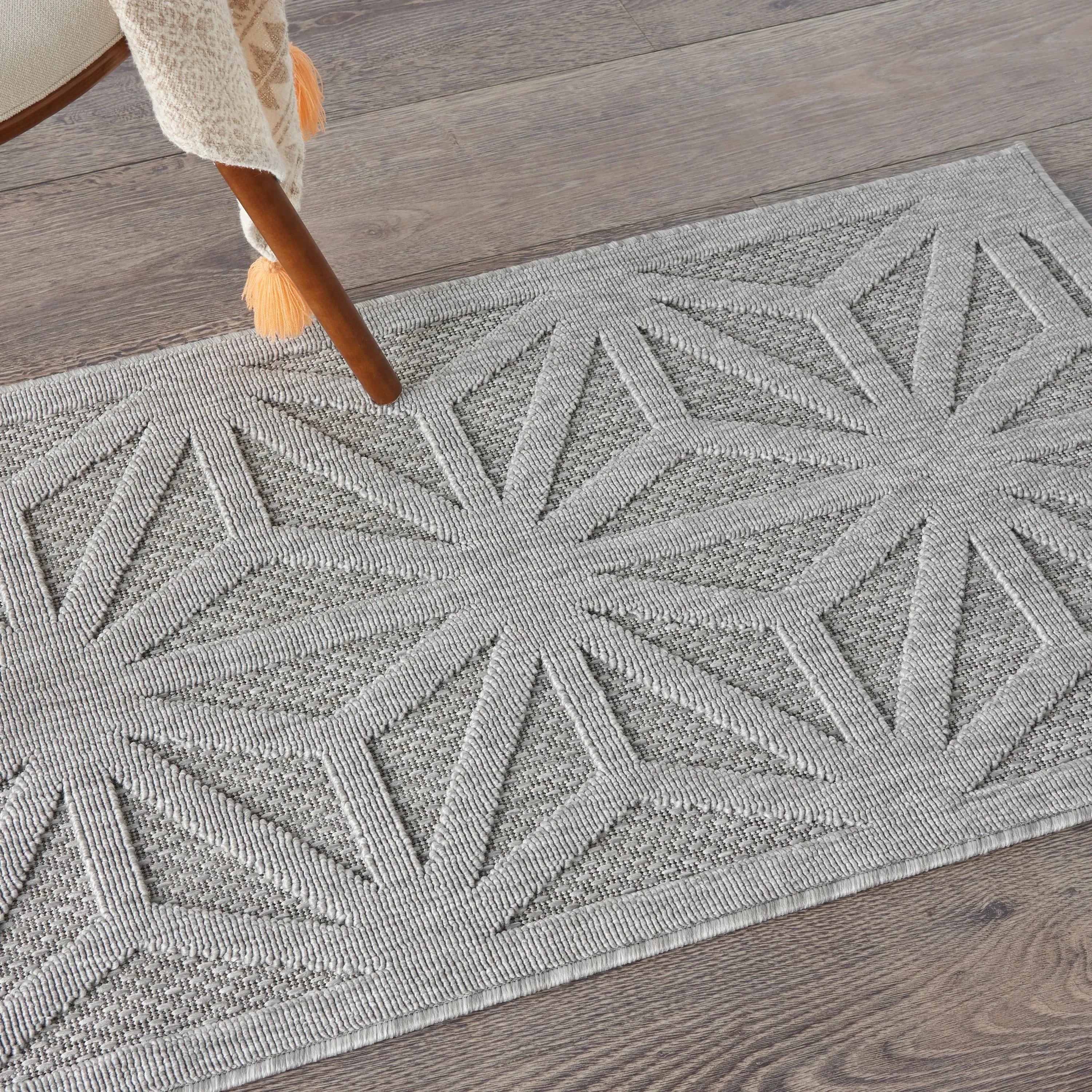 Can a rug sturdy enough for both indoor and outdoor use also be chic and attractive? For sure, if it's from the Cozumel Collection. These durable and fade-resistant area rugs are ideal for the casual lifestyle and work just as well in covered outdoor locations such as patio or porch as they do in your living room, family room or other favorite spot. Distinguished by their high-low loop pile, Cozumel area rugs take a visual cue from hand-carved rugs but are easily affordable and designed to withstand wear. This contemporary collection ranges from linear and geometric to sprightly florals and all enhanced by dimensional pile in today's most coveted neutral tones. Decorating is easy (and fun!) with the casual chic of textural Cozumel, power-loomed in modern poly-fibers.