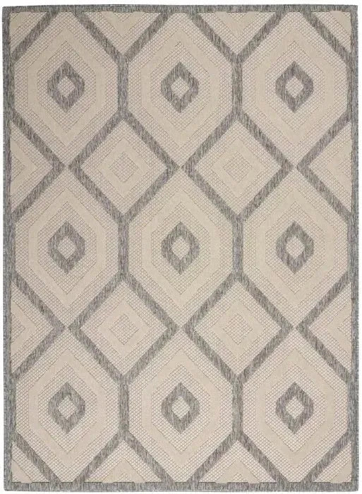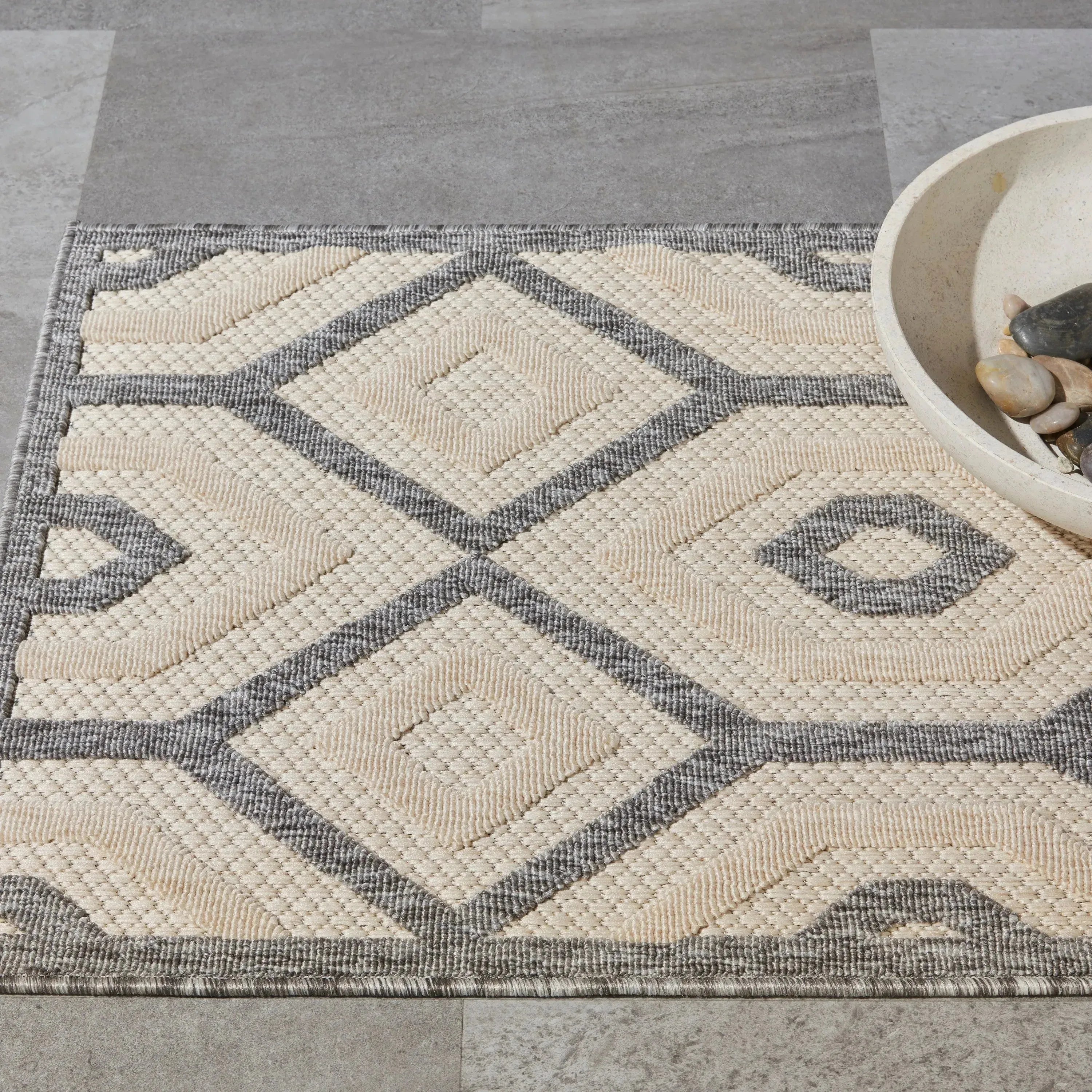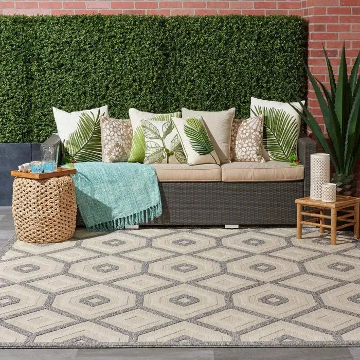Can a rug sturdy enough for both indoor and outdoor use also be chic and attractive? For sure, if it's from the Cozumel Collection. These durable and fade-resistant area rugs are ideal for the casual lifestyle and work just as well in covered outdoor locations such as patio or porch as they do in your living room, family room or other favorite spot. Distinguished by their high-low loop pile, Cozumel area rugs take a visual cue from hand-carved rugs but are easily affordable and designed to withstand wear. This contemporary collection ranges from linear and geometric to sprightly florals and all enhanced by dimensional pile in today's most coveted neutral tones. Decorating is easy (and fun!) with the casual chic of textural Cozumel, power-loomed in modern poly-fibers.