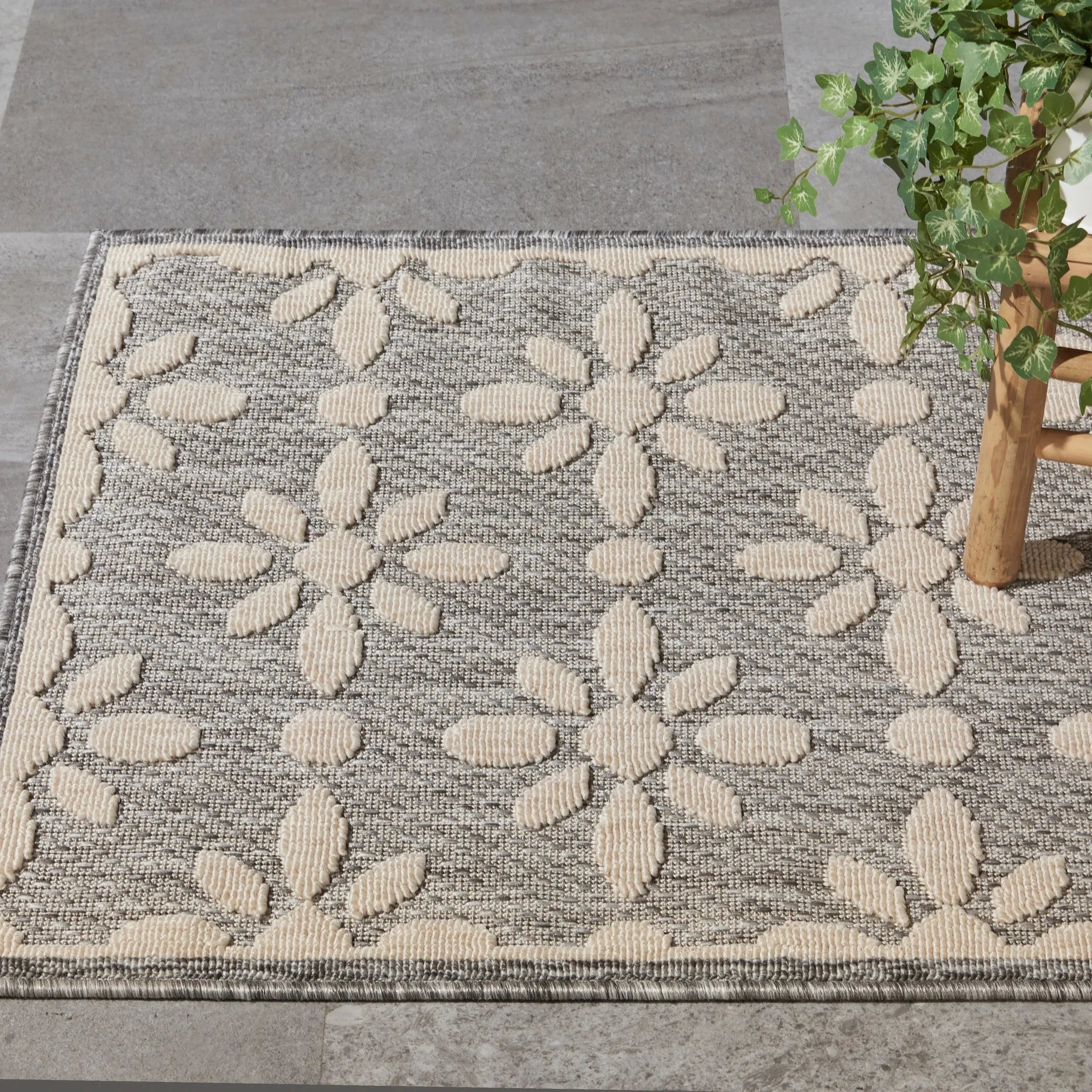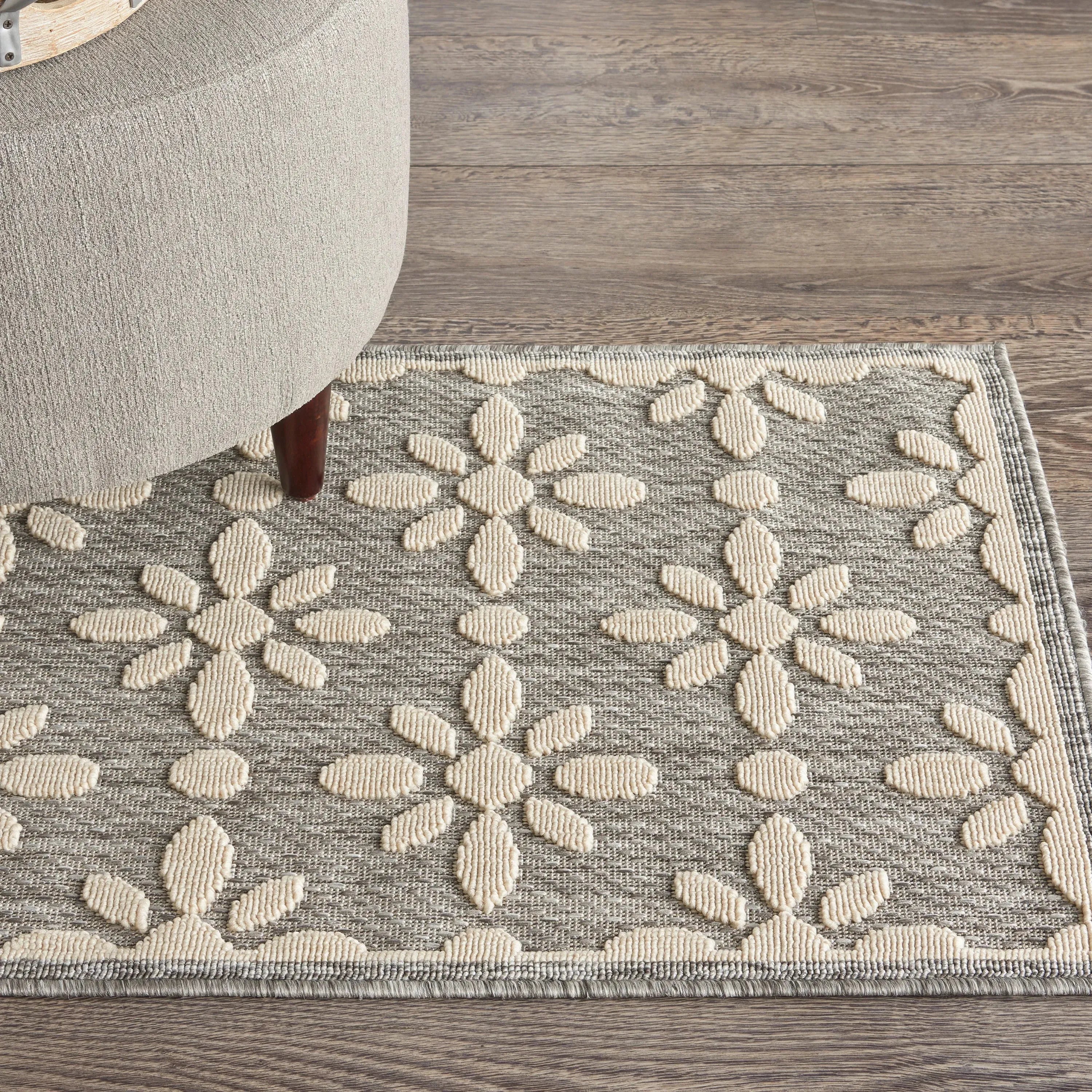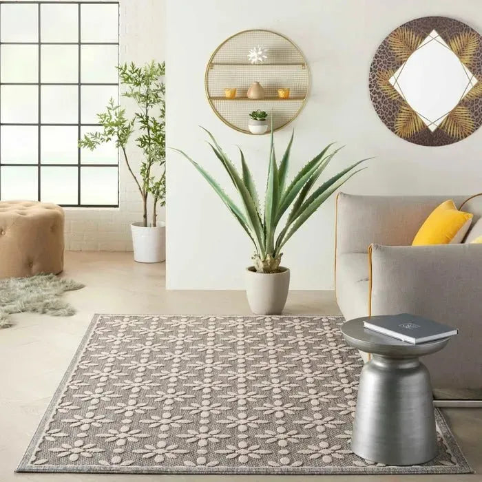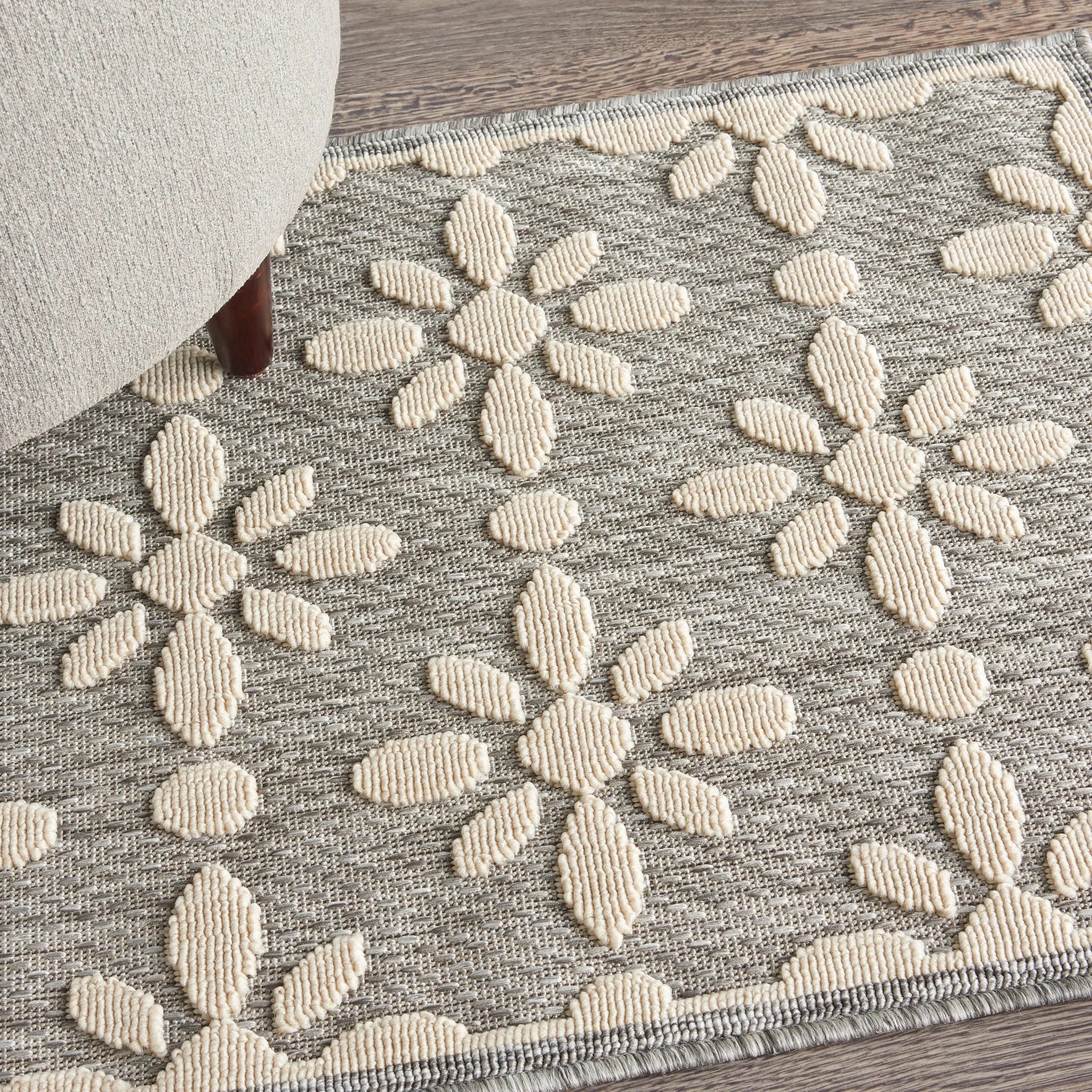 Can a rug sturdy enough for both indoor and outdoor use also be chic and attractive? For sure, if it's from the Cozumel Collection. These durable and fade-resistant area rugs are ideal for the casual lifestyle and work just as well in covered outdoor locations such as patio or porch as they do in your living room, family room or other favorite spot. Distinguished by their high-low loop pile, Cozumel area rugs take a visual cue from hand-carved rugs but are easily affordable and designed to withstand wear. This contemporary collection ranges from linear and geometric to sprightly florals and all enhanced by dimensional pile in today's most coveted neutral tones. Decorating is easy (and fun!) with the casual chic of textural Cozumel, power-loomed in modern poly-fibers.