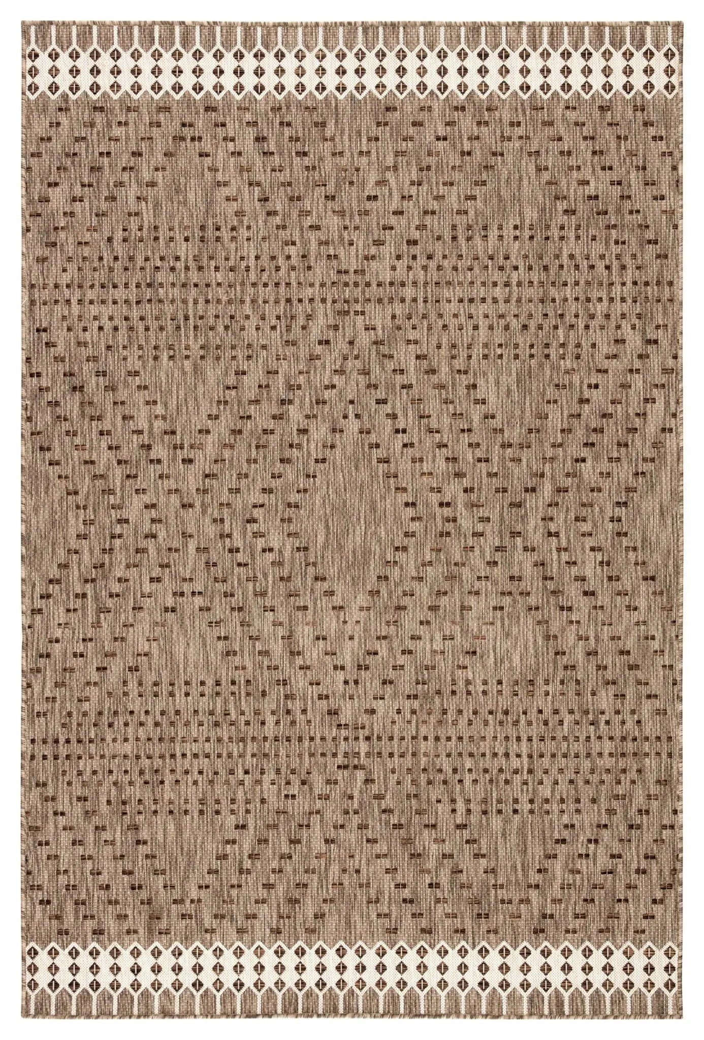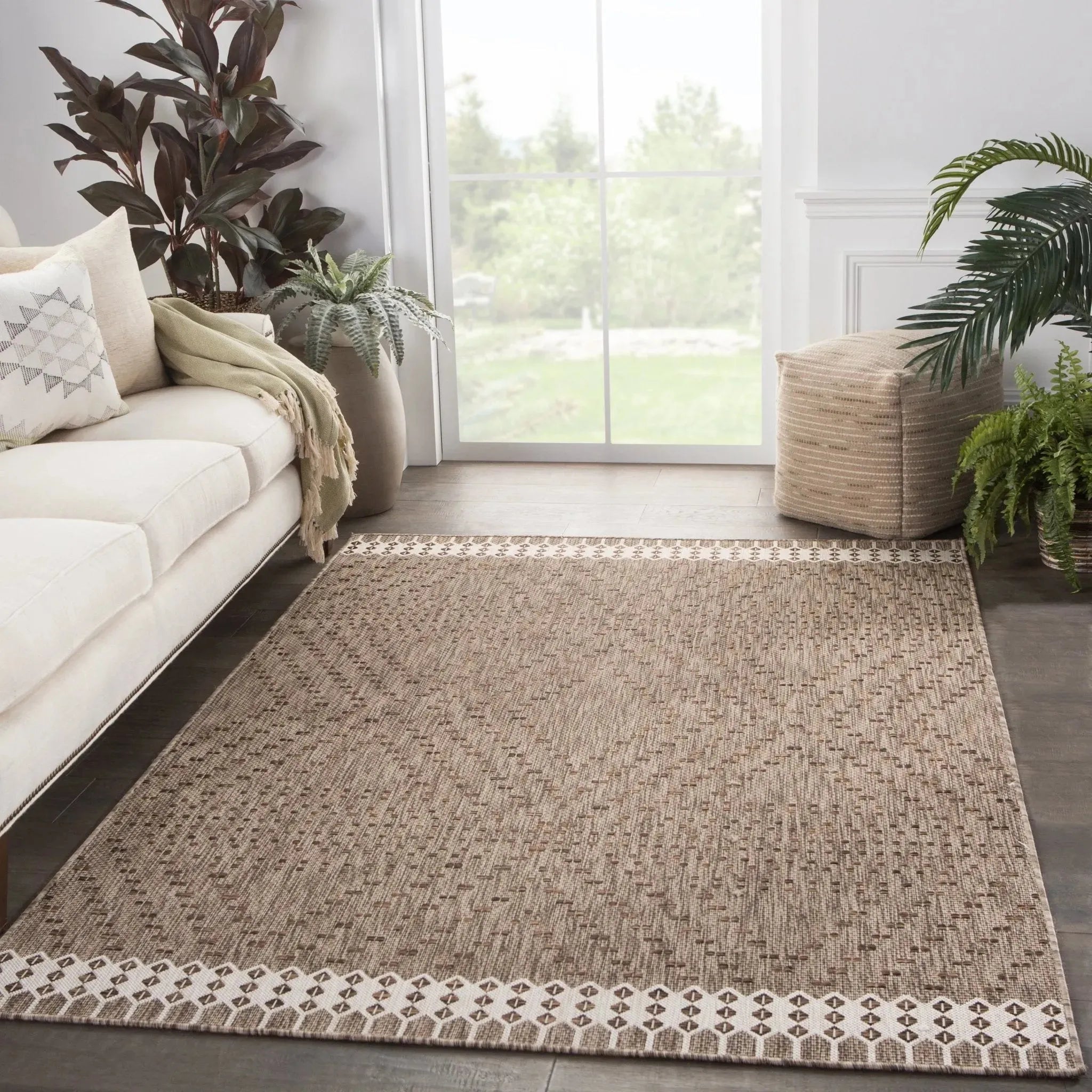 The Decora collection by Nikki Chu combines bold and graphic designs with a striking yet versatile palette. The Tirana area rug brings geometric appeal to indoor and outdoor spaces with a unique dot pattern and border motif in a neutral brown and gray colorway.