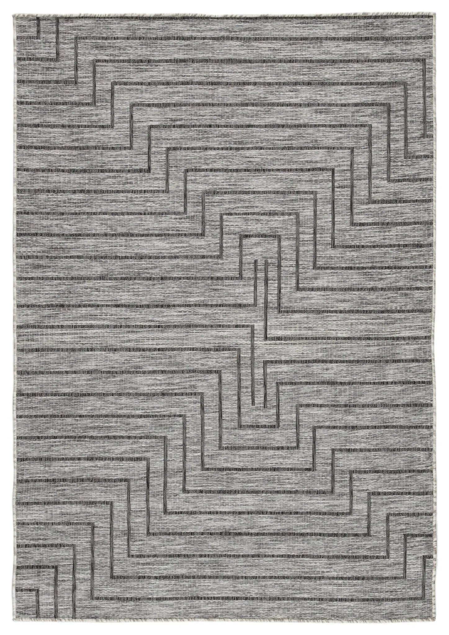 Bold and graphic, the Decora Xantho area rug by Nikki Chu offers compelling geometric appeal to indoor and outdoor spaces. An asymmetrical labyrinthine design makes a dynamic impact on this durable polyester layer, while the tonal gray colorway maintains the contemporary style. This rug is perfect for your living room, dining room, den, bedroom, or any living space