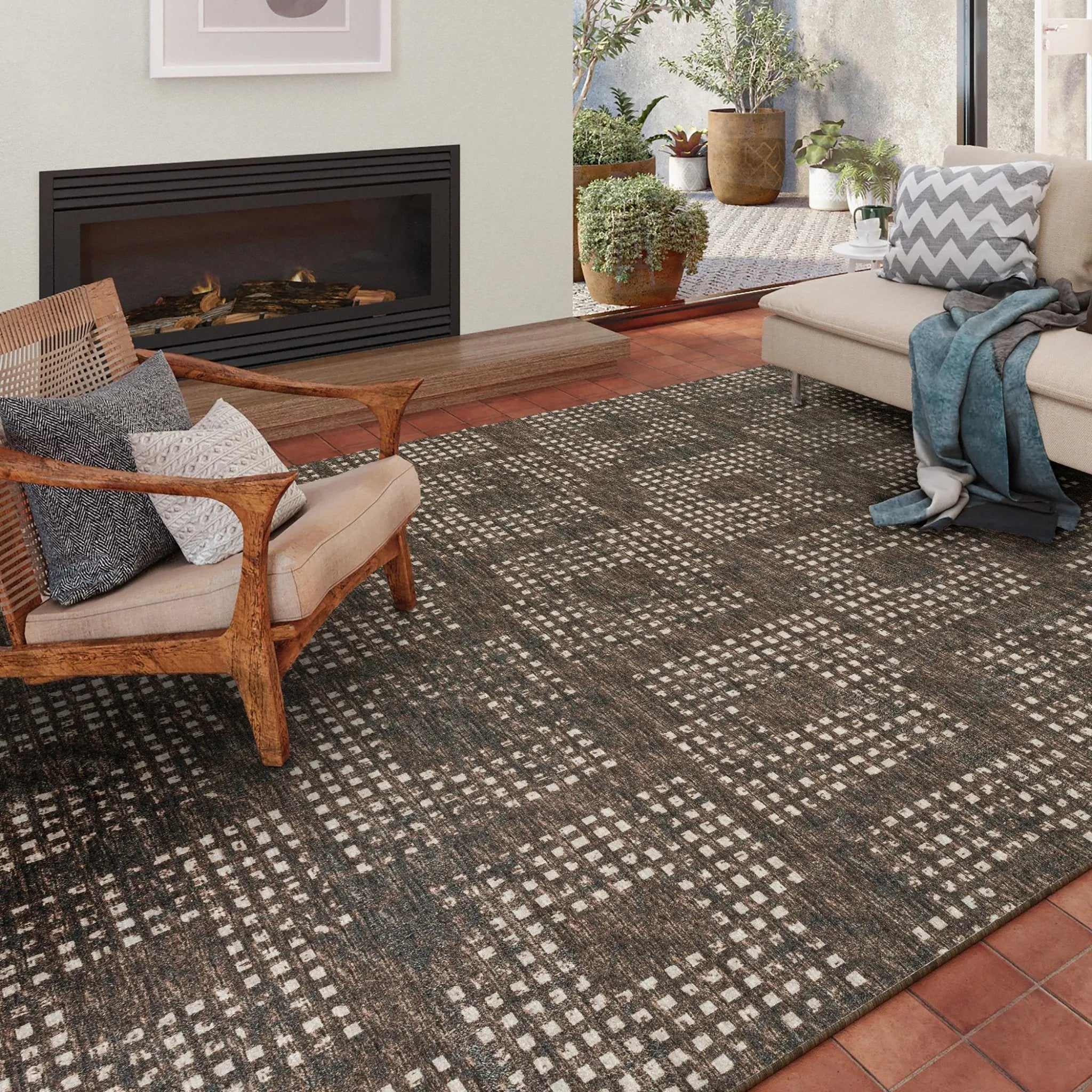 Subtle, multi-tonal geometric style with incredible color movement. Crafted in the USA of a heavy polyester pile with a non-skid backing that is perfect for indoor or outdoor use.