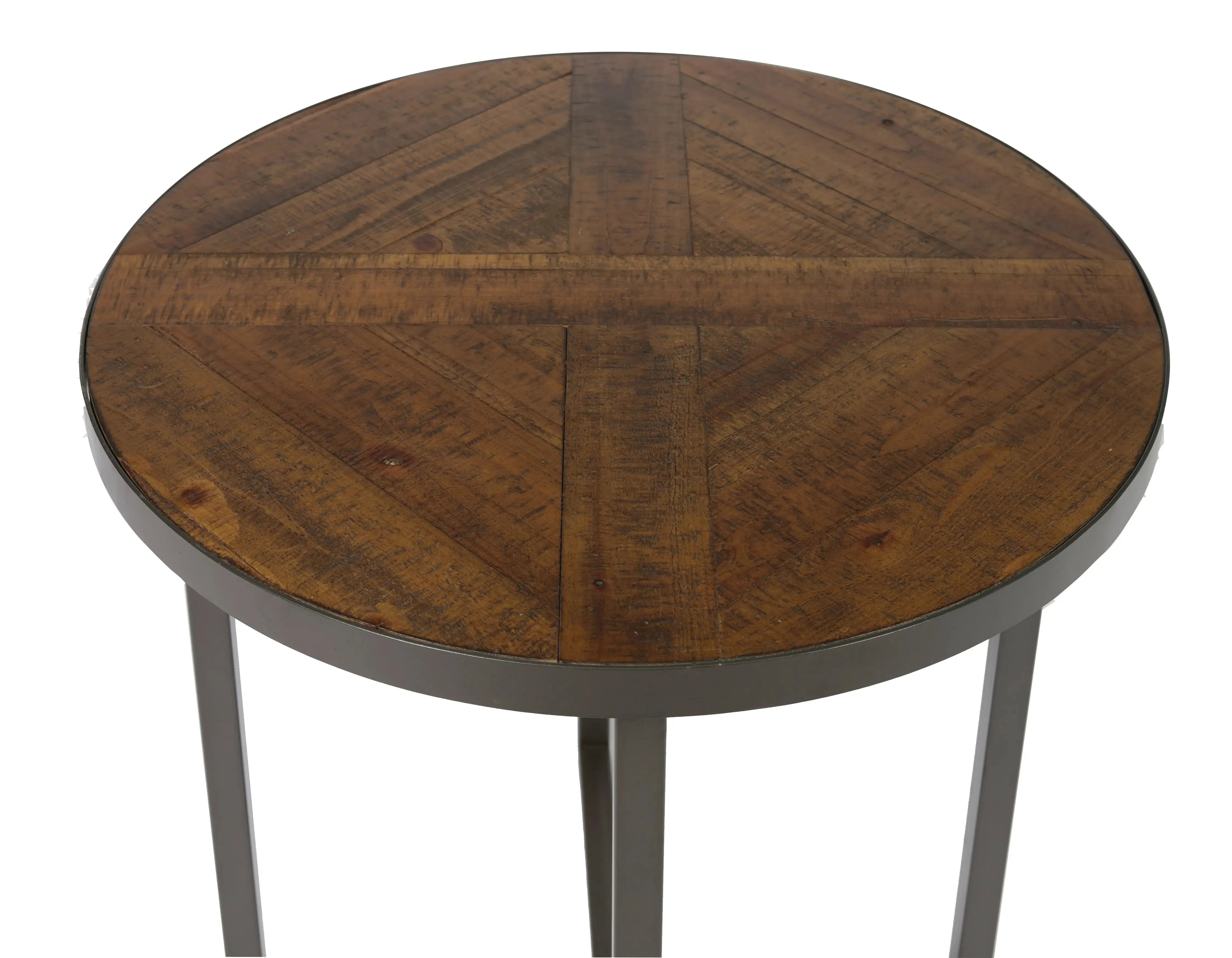 The Denton occasional collection is a study in simplicity. A straightforward cross of welded metal tubing finished in a steel gray tone and paired with a rustic pine-look planked top. The round cocktail table pairs well with today's sectional sofas and the petite round end table is the perfect accent piece.