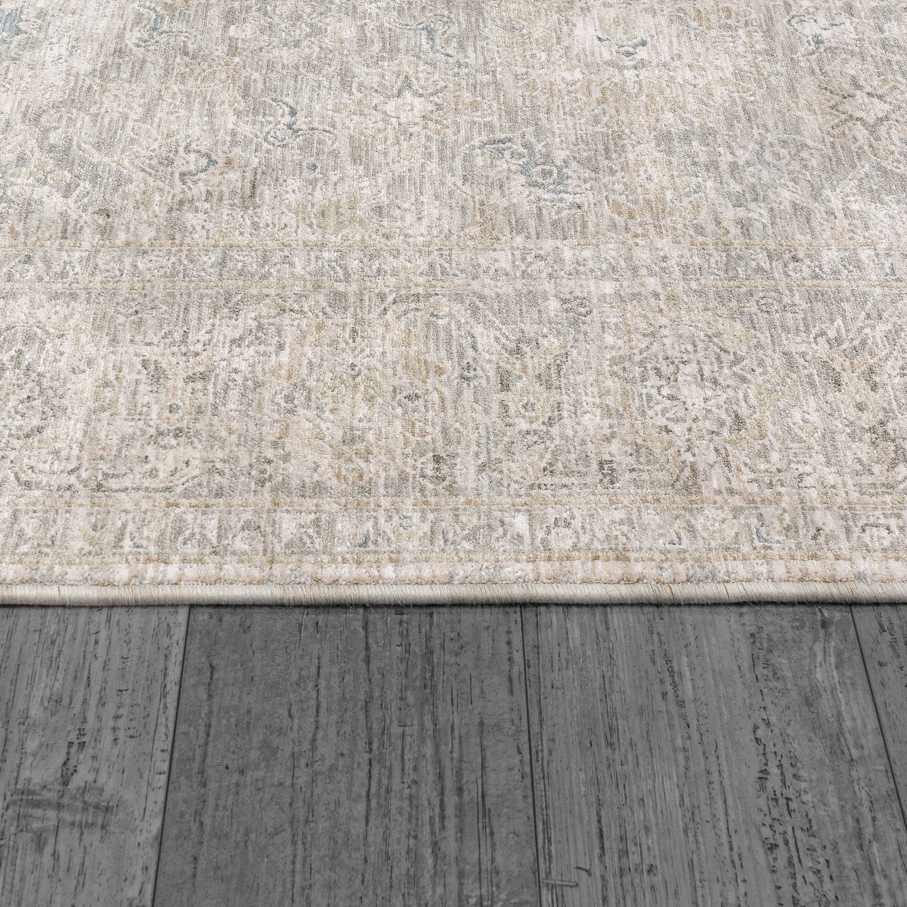 Dharma rugs showcase a sophisticated blend of subtle blue tones woven into a neutral base, offering an elegant and high-fashion aesthetic that effortlessly elevates the visual appeal of any living space. Traditional and abstract designs seamlessly come together in Dharma, enhanced by a slight distressed look. This combination adds a layer of versatility, creating a rug that complements various interior styles with a nuanced and stylish touch. Machine-made in Turkey using space-dyed polyester, Dharma rugs strike a balance between affordability and sophistication. The space-dyed polyester construction ensures durability, making these rugs a practical yet stylish choice for enhancing the overall ambiance of your home.