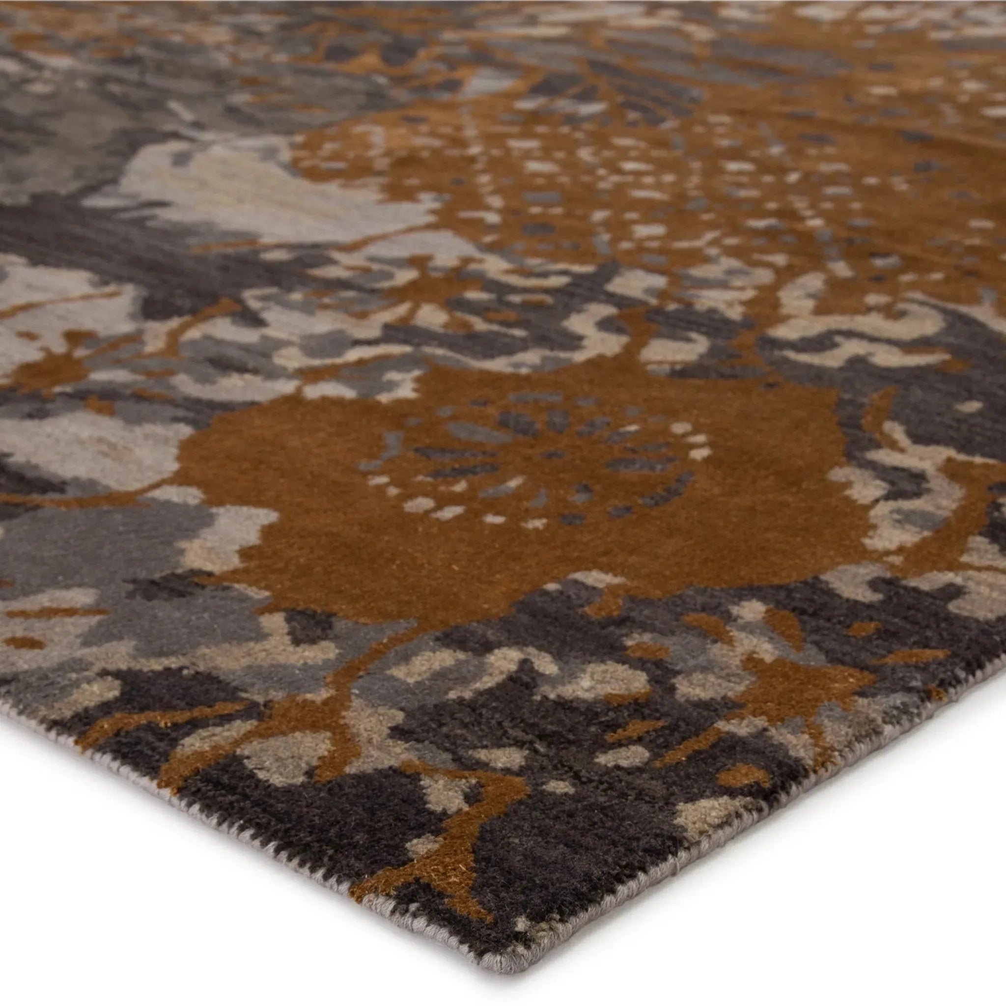 Steeped in both history and modern style, the Reconnext collection by Jenny Jones combines globally inspired motifs with on-trend colorways and re-imagined patterns. Recalling the delicacy and intricate design of its Japanese namesake, the hand-knotted Kimono rug boasts a large-scale floral motif with beautifully textured details. Crafted of lustrous silk and natural wool, this richly toned rug of deep ocher and gray grounds any space with exceptional balance and inviting texture.