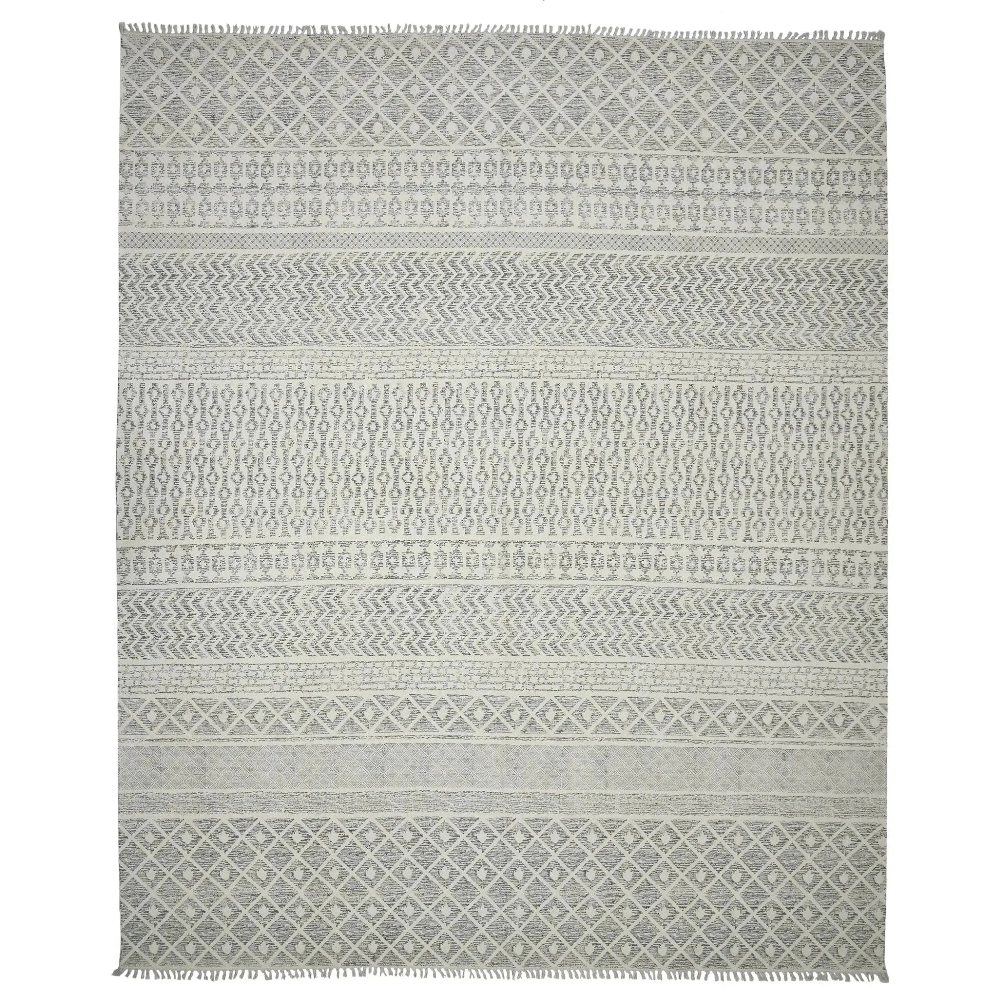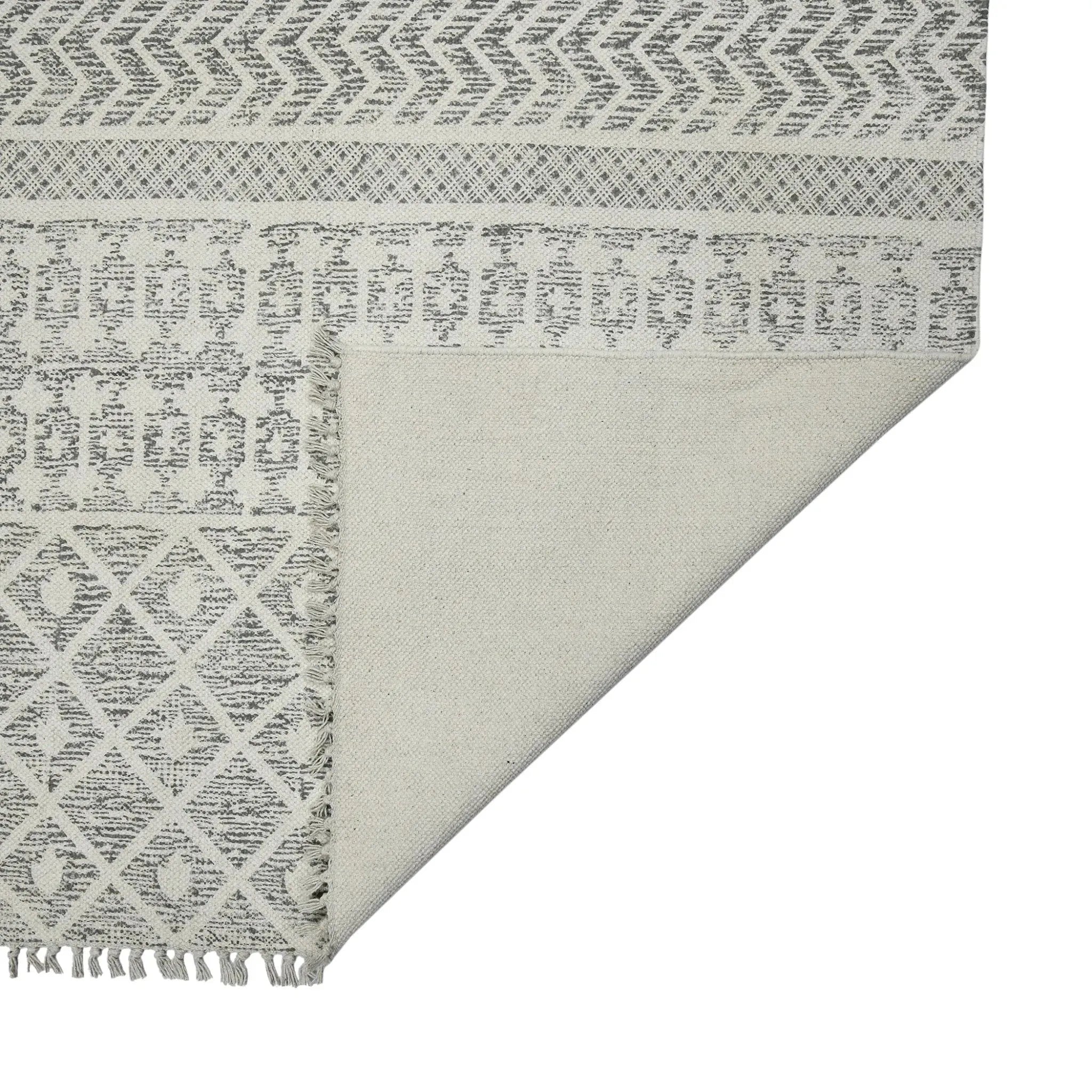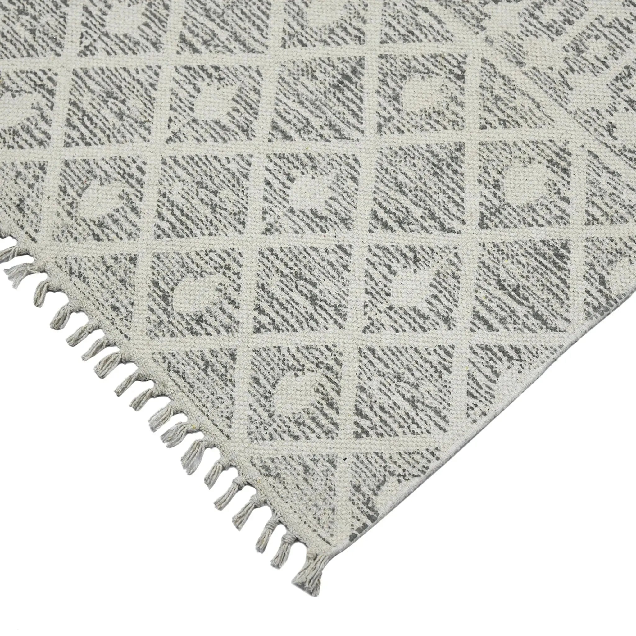 The Dune collection offers hand-woven, natural cotton rugs in a relaxed yet refined pattern. Featuring a low profile, subtle texture, and distressed geometric patterns, this collection will elevate your casual and cozy space to new heights. Looks and feels great in living rooms and bedrooms alike, with matching runners available. Handmade in India with all-natural, eco-friendly cotton featuring 1-inch braided tassels and a screen printed pattern with unbelievable softness and versatility.