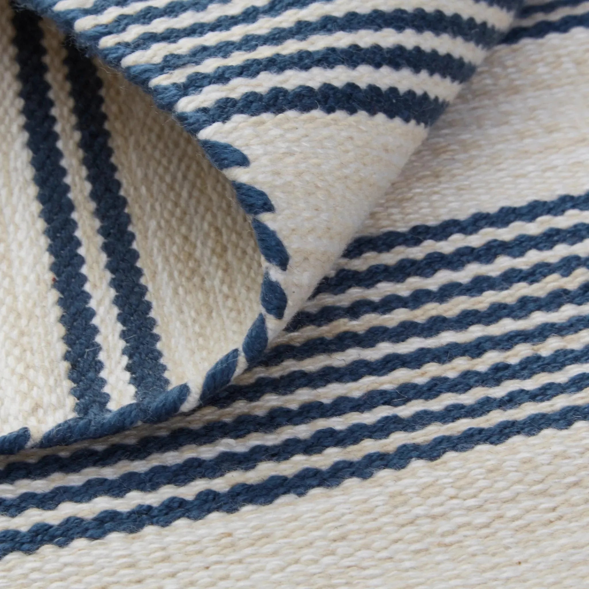 The Duprine Collection grounds any room in casual contemporary comfort. Refined pin stripes accentuate this cozy cream dhurrie adding the perfect pop of color without detracting from its clean classic appeal. Direct from India Duprine is made from recycled PET - a smart choice for your busiest areas.