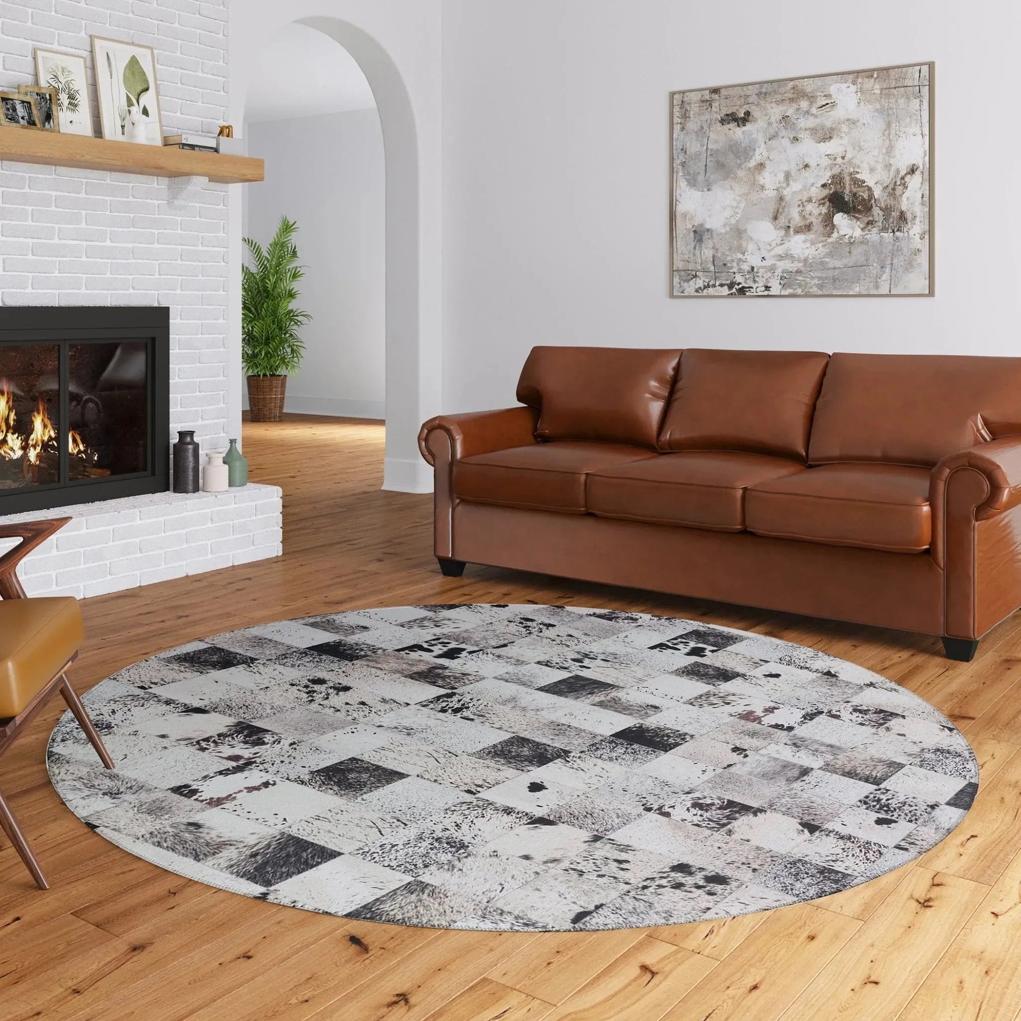 Durango is a faux hide patchwork collection. The details on these faux hide rugs look so real you will wow your guests. This stylish rug features neutral colors with gradient movement. Featuring an ultra-soft and ultra thin pile, each rug is made with 100% polyester pile complete with a non-skid backing. Crafted in the USA using Foreign & Domestic materials and US labor. They are UV Stabilized for indoor and cover outdoor spaces.