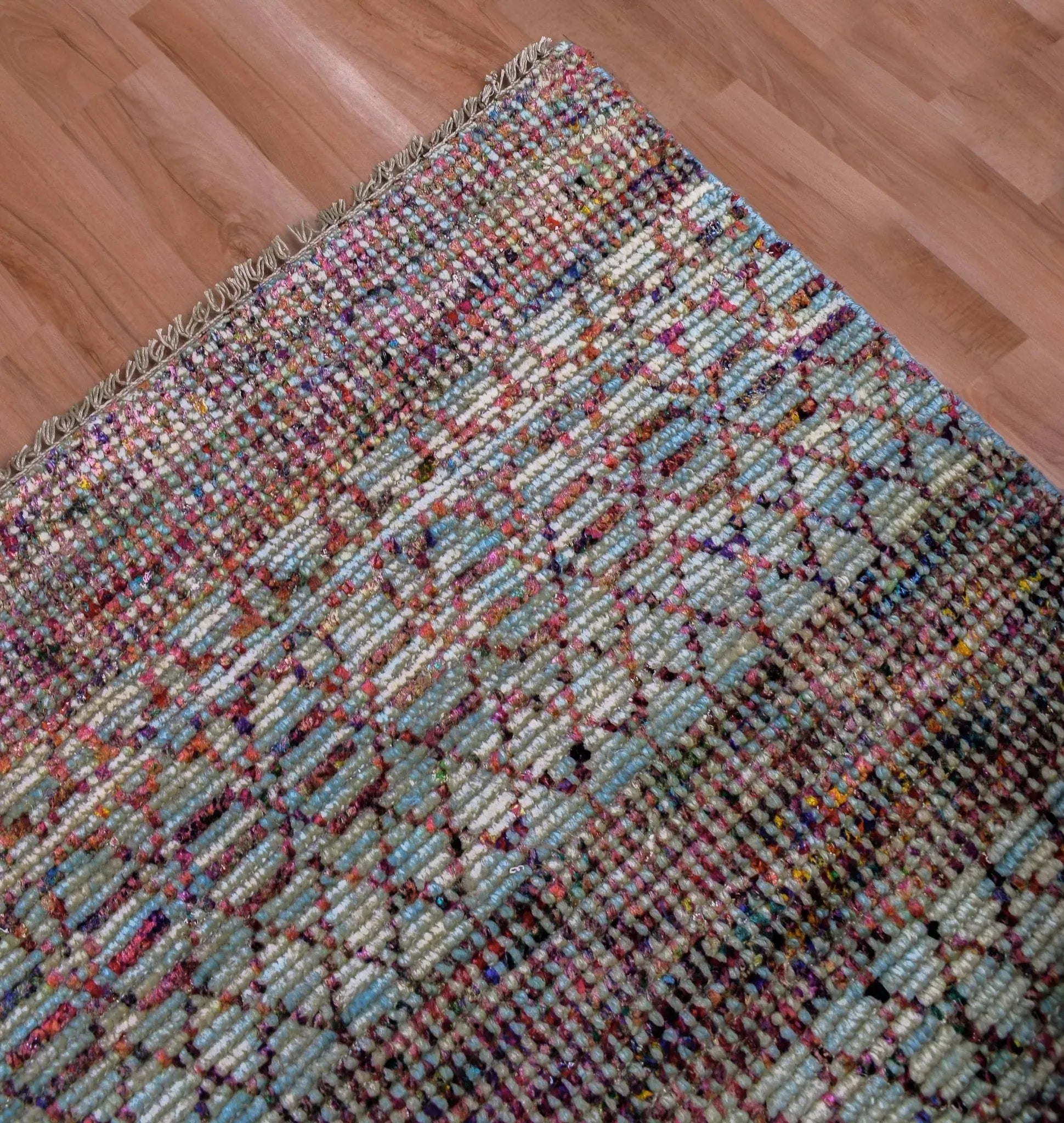The Parisa PSA06 Denim/Multi Rug comes in various sizes, including 2x10, 5x7, 8x10, 8x11, 9x13, and 12x15 feet, accommodating different room dimensions.