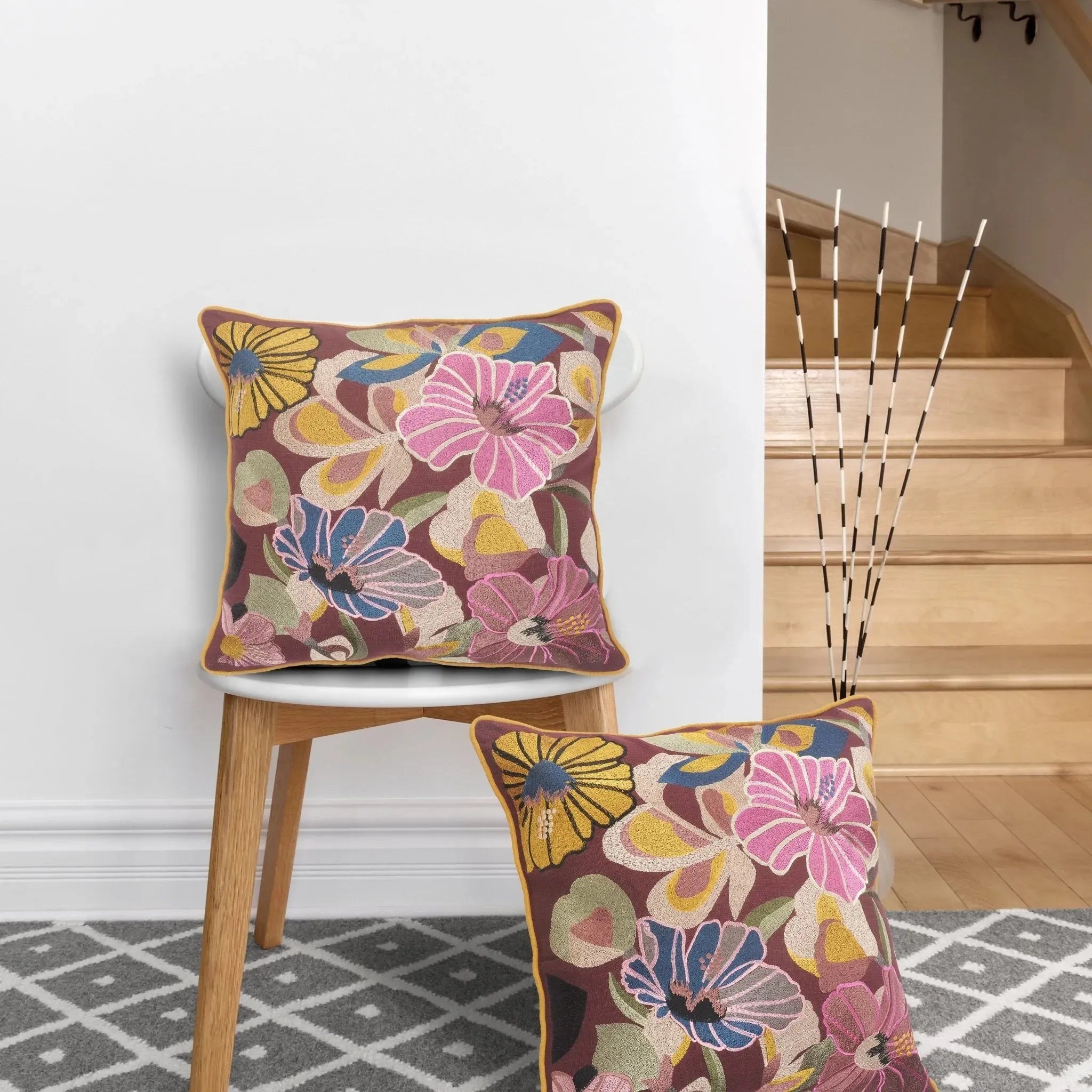 Designed to thrill, our pillow collection will add intricate mastery and eye pleasing designs to any room. This floral addition dwells perfectly on a comfy couch, bed, or sunroom bench. This pillow is a wonderful design that features a balanced color combination and graphic flowers. The edge features a piping for a stark border. Handcrafted with the customer in mind, there is no compromise of comfort and style with the pillow line we create.