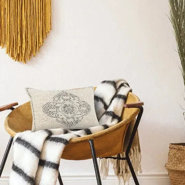Designed to thrill, our pillow collection will add intricate mastery and eye pleasing designs to any room. This embroidered medallion throw pillow with chevron bordered edging is the perfect standalone accent or a great addition to a traditional collection. Handcrafted with the customer in mind, there is no compromise of comfort and style with the pillow line we create.