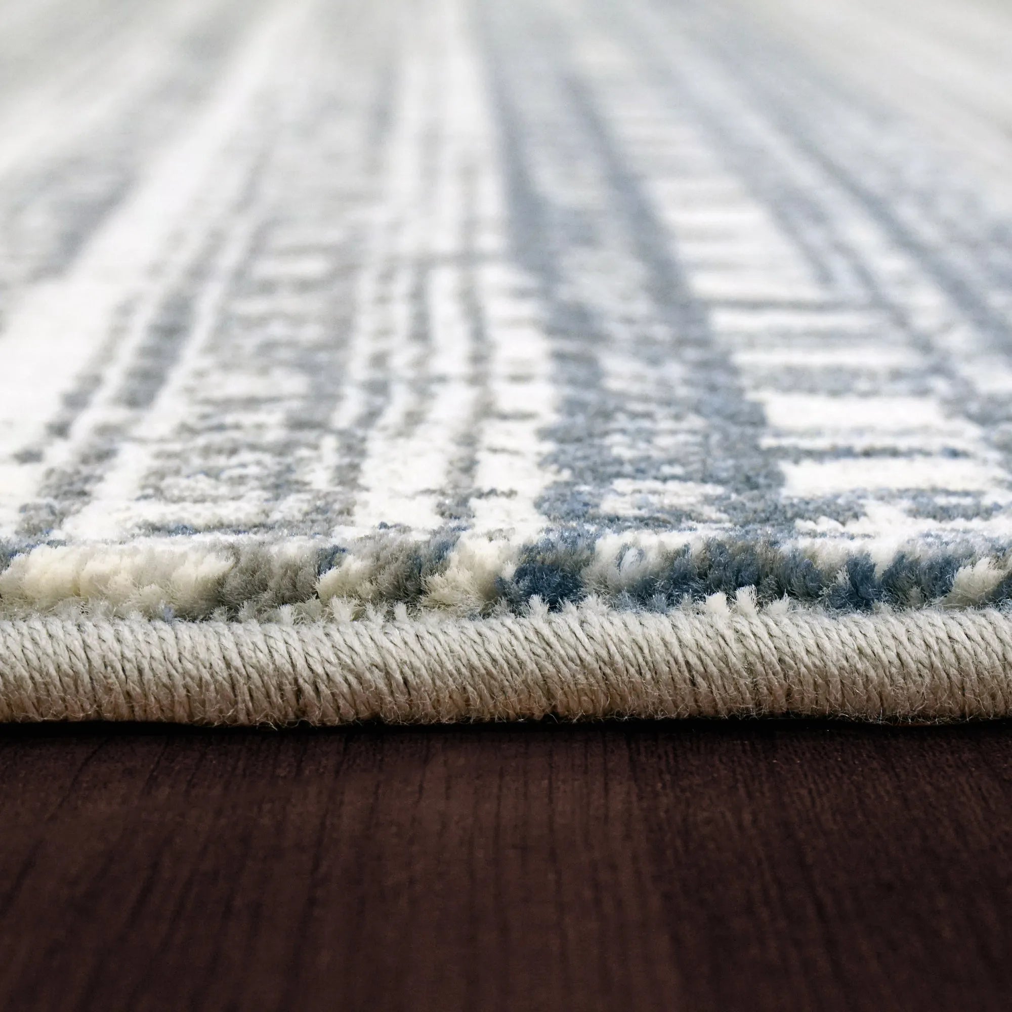 The Parisa PSA06 Denim/Multi Rug comes in various sizes, including 2x10, 5x7, 8x10, 8x11, 9x13, and 12x15 feet, accommodating different room dimensions.