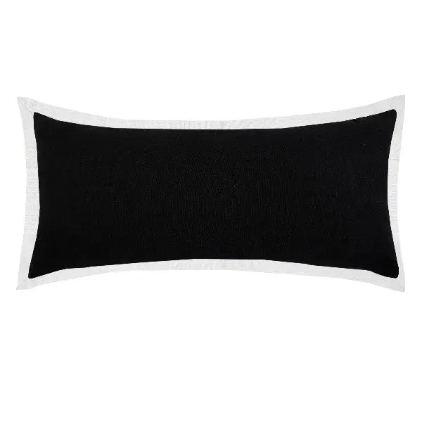 The Empire pillow collection bestows timeless elegance and sophisticated splendor to any space. Bordered symmetry and neutral hues allow for easy layering and endless compatibility. This throw pillow is constructed with natural cotton for a piece that is just as soft as it is stylish. This accent piece features contrasting tones of jet black and crisp white. Handcrafted with the customer in mind, there is no compromise of comfort and style with the pillow line we create.