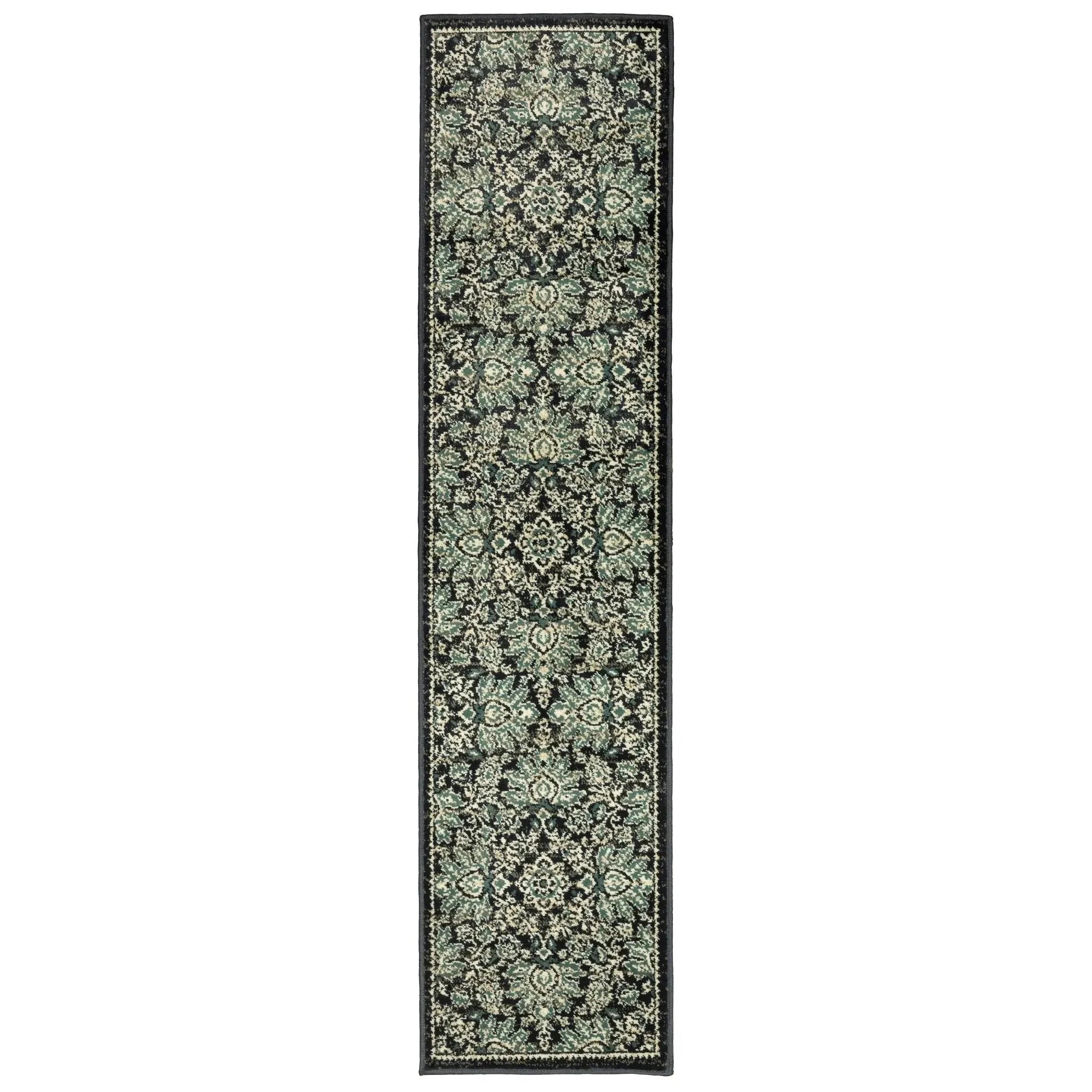 The rug showcases an exceptional Persian floral design with curvaceous leaves, bright blossoms, and other classic botanical motifs, bringing vivid energy to your living space.