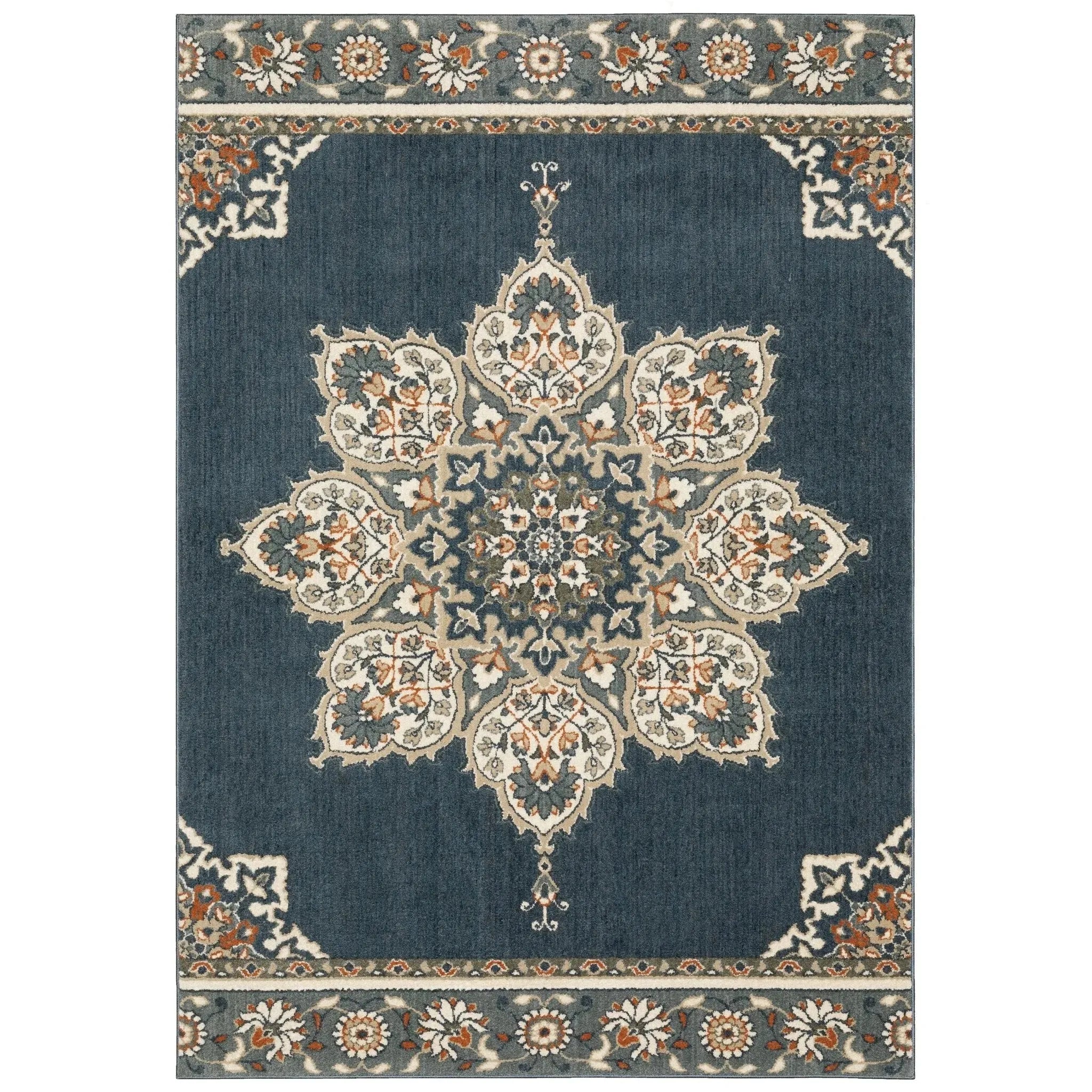 Fiona is a machine loomed microfiber collection with a low, dense pile and a super soft hand. It features shades of soft slate, deep marine blue, terracotta and warm neutrals in designs ranging from organic abstracts to tile-work as well as traditional medallion pieces.