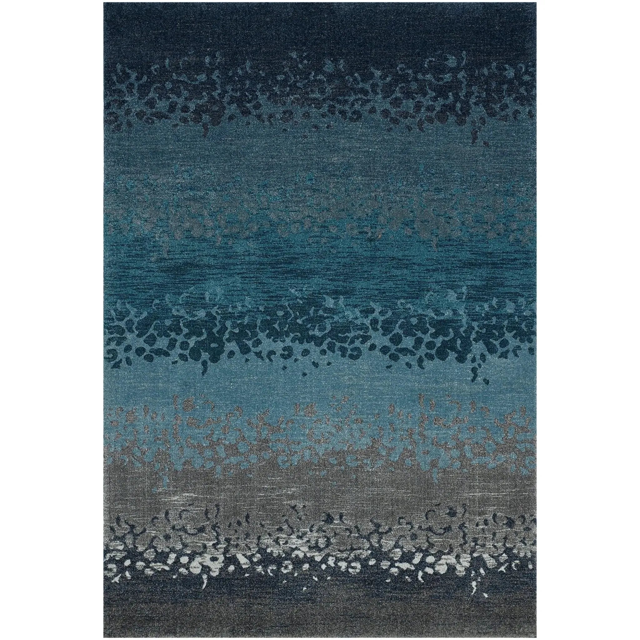 The Parisa PSA06 Denim/Multi Rug comes in various sizes, including 2x10, 5x7, 8x10, 8x11, 9x13, and 12x15 feet, accommodating different room dimensions.