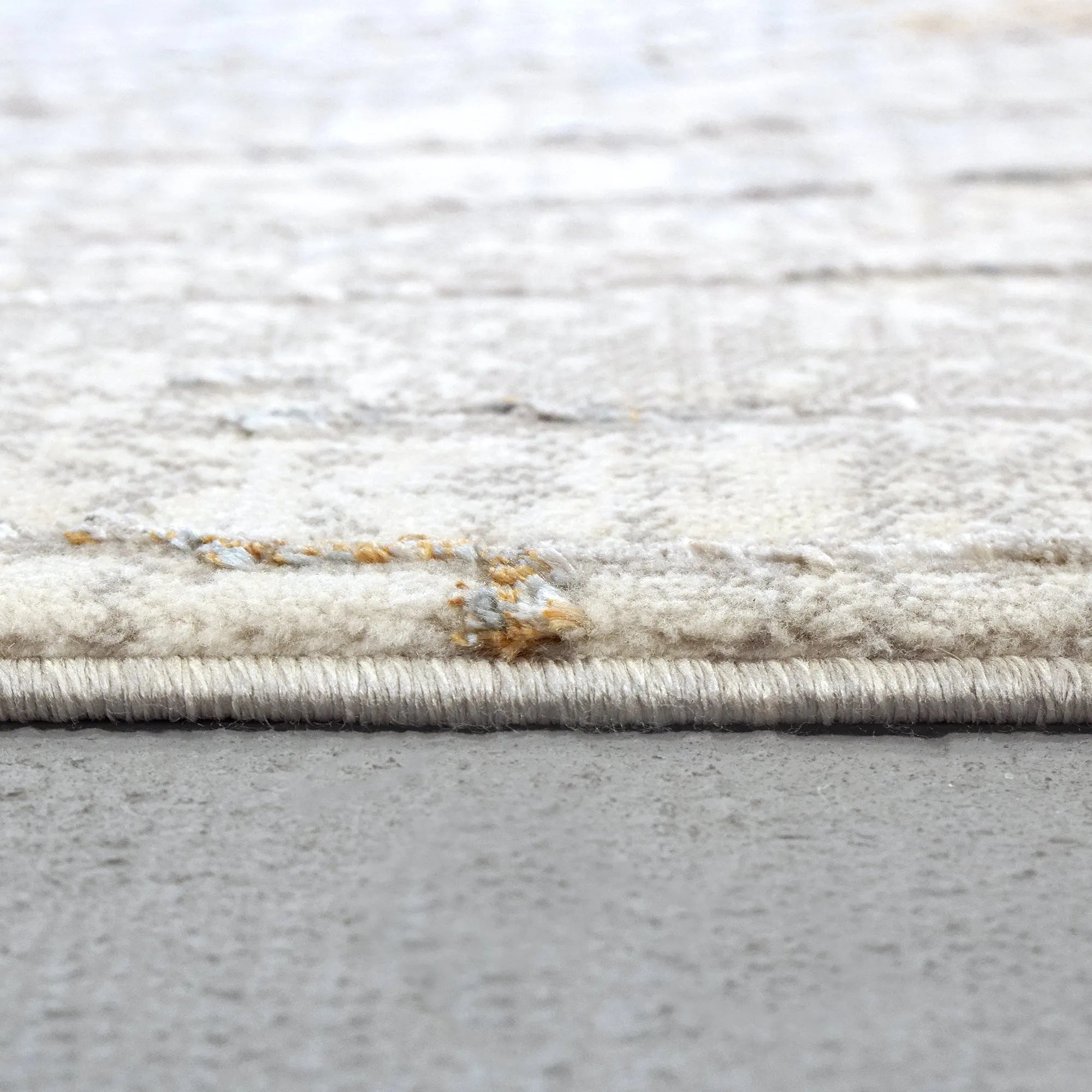 The trendsetting abstract and transitional designs of this collection reflect luxurious contemporary art, comprised of intriguing and unmethodical brushstrokes. Polyester and machine-made in Turkey, Gold is expertly power-loomed and exudes smoothness with just the right amount of sheen. With captivating soft grey hue as its undertone, the perfect canvas is created with subtle colors contrasting an alluring black accent. Non-shedding and easy to care for, these rugs manage to be practical while also being fashion-forward.