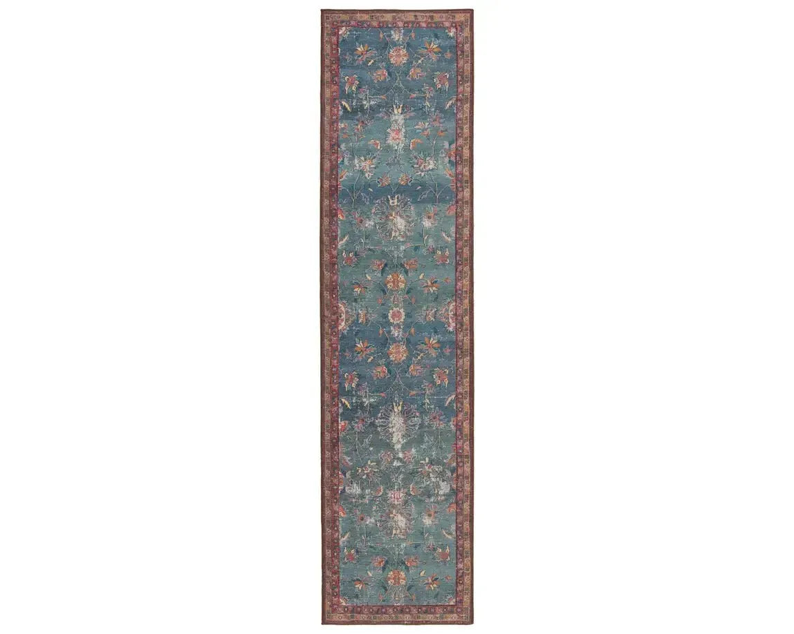 The Parisa PSA06 Denim/Multi Rug comes in various sizes, including 2x10, 5x7, 8x10, 8x11, 9x13, and 12x15 feet, accommodating different room dimensions.