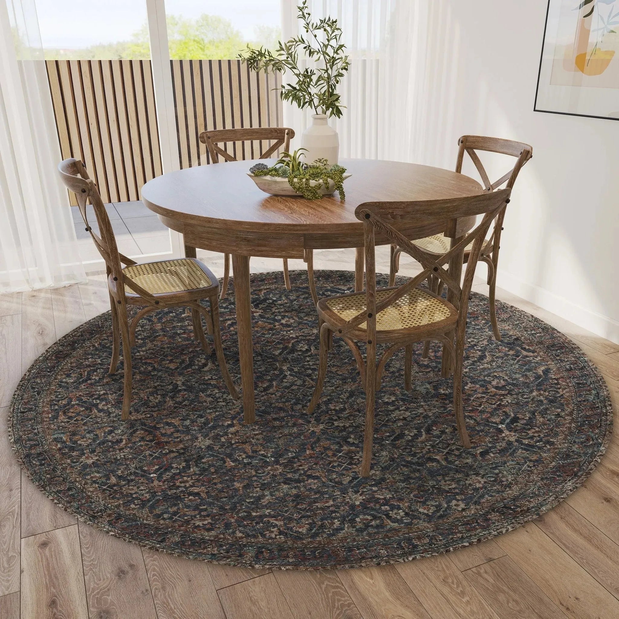 The Parisa PSA06 Denim/Multi Rug comes in various sizes, including 2x10, 5x7, 8x10, 8x11, 9x13, and 12x15 feet, accommodating different room dimensions.