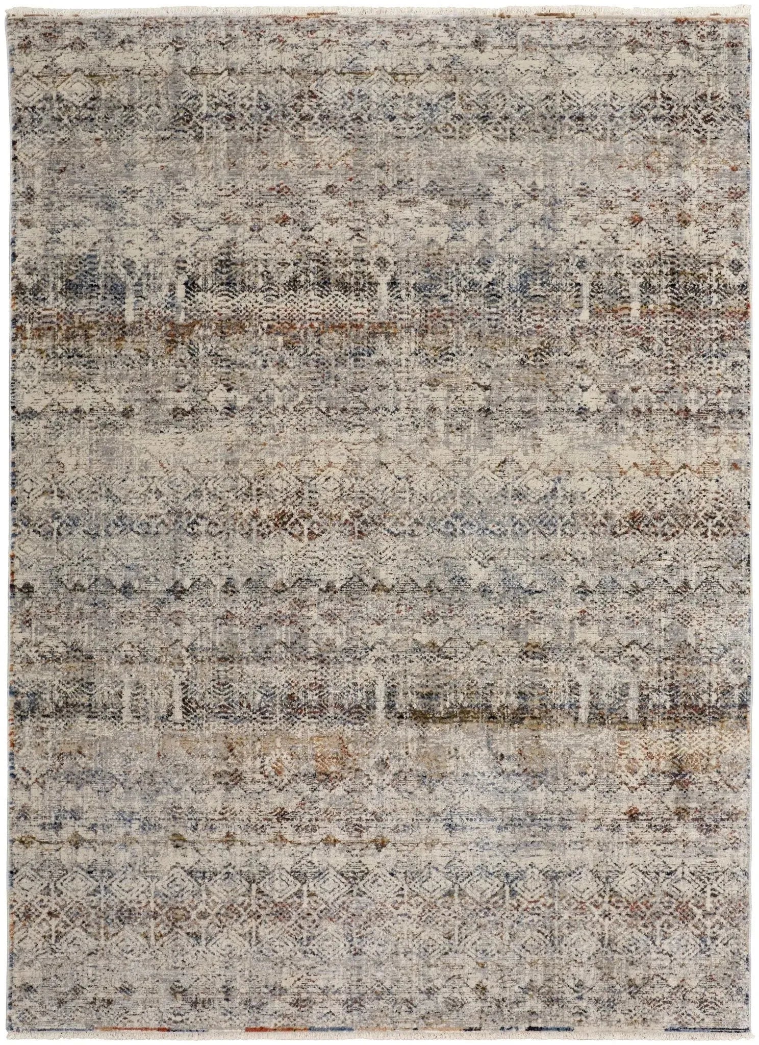 The Parisa PSA06 Denim/Multi Rug comes in various sizes, including 2x10, 5x7, 8x10, 8x11, 9x13, and 12x15 feet, accommodating different room dimensions.