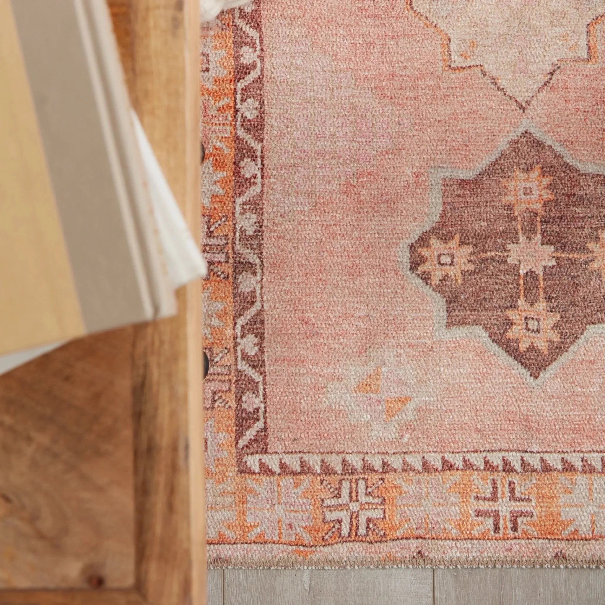 The vintage-inspired Kairos collection brings a playful and warm vibe to contemporary spaces. The Bijou rug features a dusty pink and taupe medallion pattern with a detailed terracotta border. This printed style offers the timelessness of a classic Turkish motif with the versatility and affordability of a power-loomed rug.