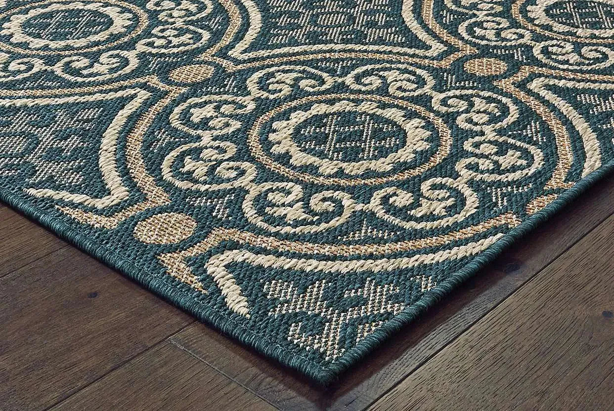 The Latitude collection showcases sophisticated designs ranging from traditional tile and medallion patterns to simple modern borders and geometrics. Multi-colored yarns in neutral grays, accented by tones of deep navy and vibrant persimmon, add texture and a pop of color underfoot. Machine-woven of polypropylene, Latitude is easy to care for and can be used both indoors and out.