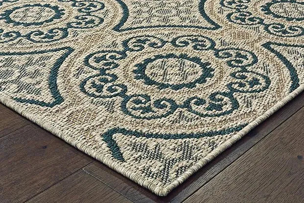 The Latitude collection showcases sophisticated designs ranging from traditional tile and medallion patterns to simple modern borders and geometrics. Multi-colored yarns in neutral grays, accented by tones of deep navy and vibrant persimmon, add texture and a pop of color underfoot. Machine-woven of polypropylene, Latitude is easy to care for and can be used both indoors and out.