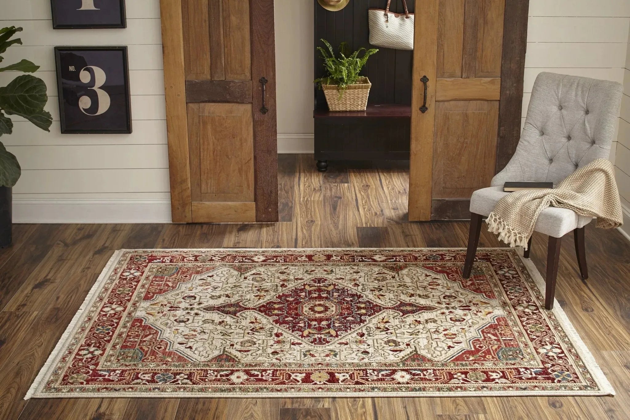 Sophisticated interiors call for the classical styling of this traditional area rug. Ornate patterns fill the field of each accent rug with botanical flower-and-vine scrolls, medallions and motifs that recall the elegant antiquity of heirloom carpets. Power loomed construction and sumptuous synthetic threads keep each decorative floorcovering rich with heritage quality, preserving the ornamental beauty of each distinctive design for years to come. This rug is perfect for your living room, dining room, den, bedroom, or any living space