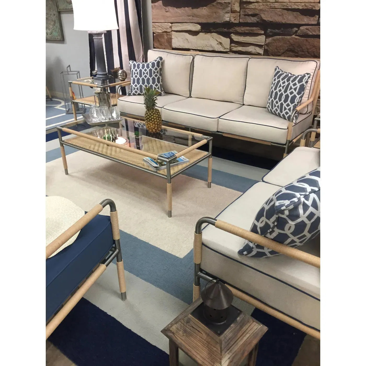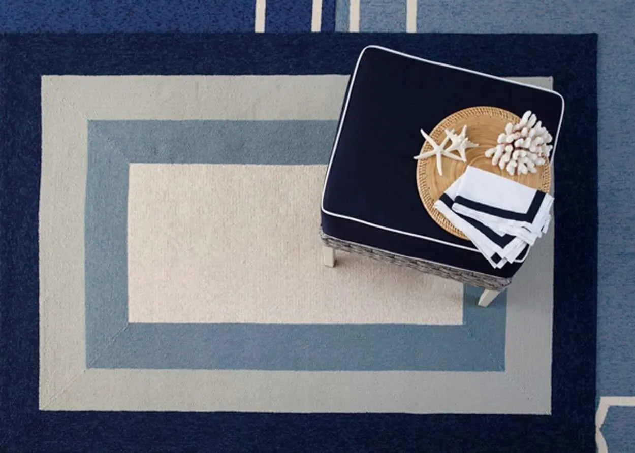 Outdoor rugs built to stand the test of time indoors or out. Hand-hooked of UV-treated polypropylene in a coastal color palette, these rugs are perfect for a relaxed outdoor setting or a refreshing indoors. Hamptons Highview and Madison patterns in blue and aqua colorways were on display in this summers Hampton Designer Showhouse where Libby designed the large outdoor terrace and pool deck areas. Made in China with a 1/2" pile height.